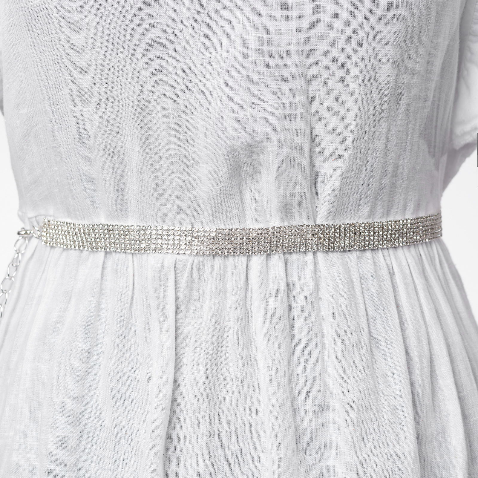Shopika Curea metalica argintie cu strasuri albe de 1.5 cm, flexibila