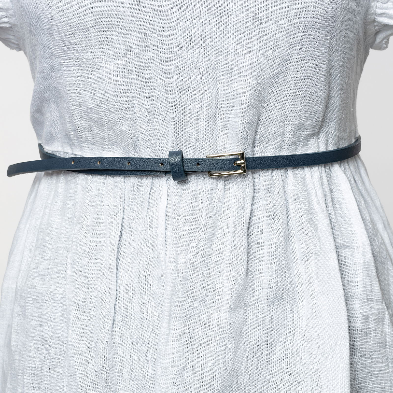 Shopika Curea subtire bleumarin de 0.9 cm, din piele ecologica cu catarama metalica argintie dreptunghiulara