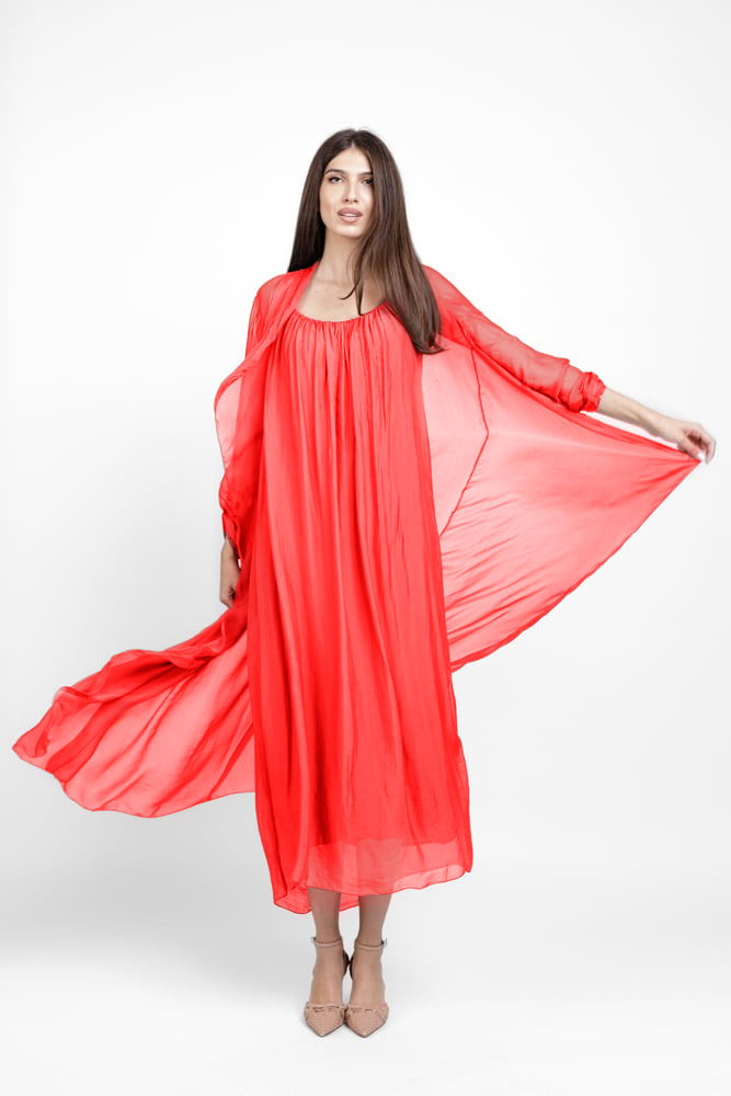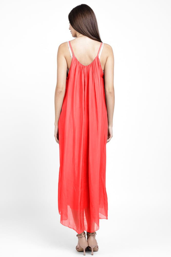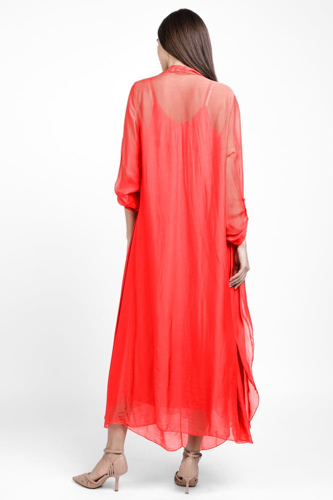 Shopika Compleu cu rochie si blazer din matase si vascoza, corai