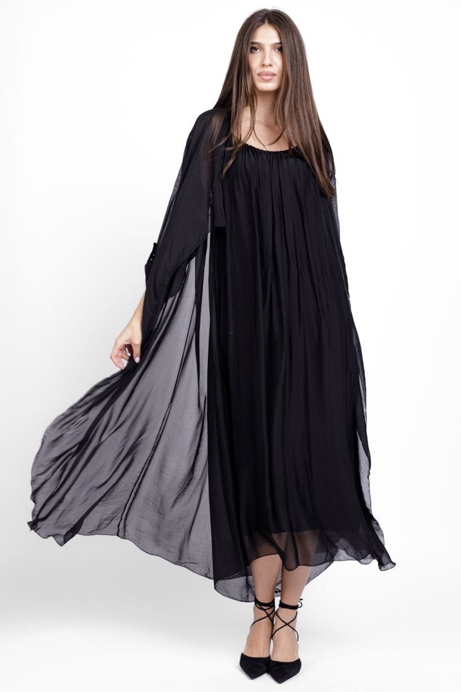 Shopika Compleu cu rochie si blazer din matase si vascoza, negru