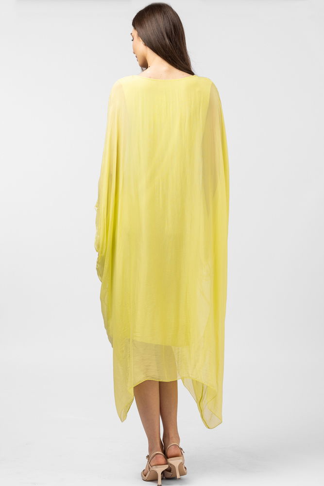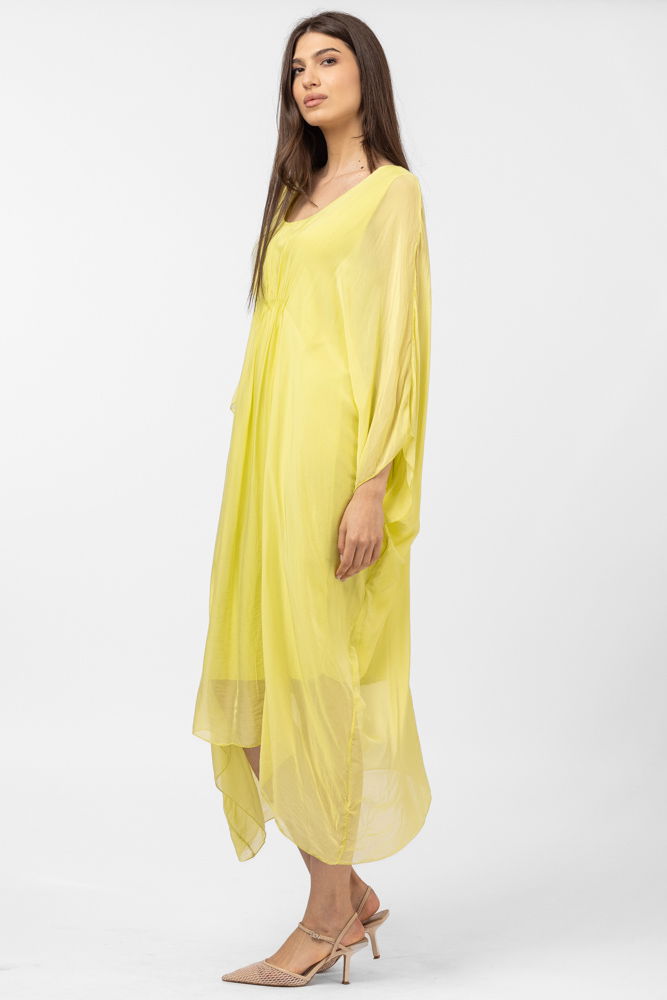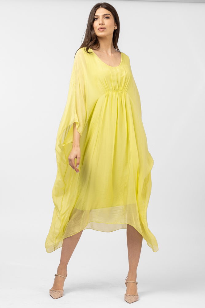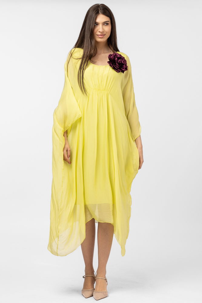 Shopika Rochie galbena, lunga, ampla, din matase si vascoza, cu detaliu sub bust, in colturi