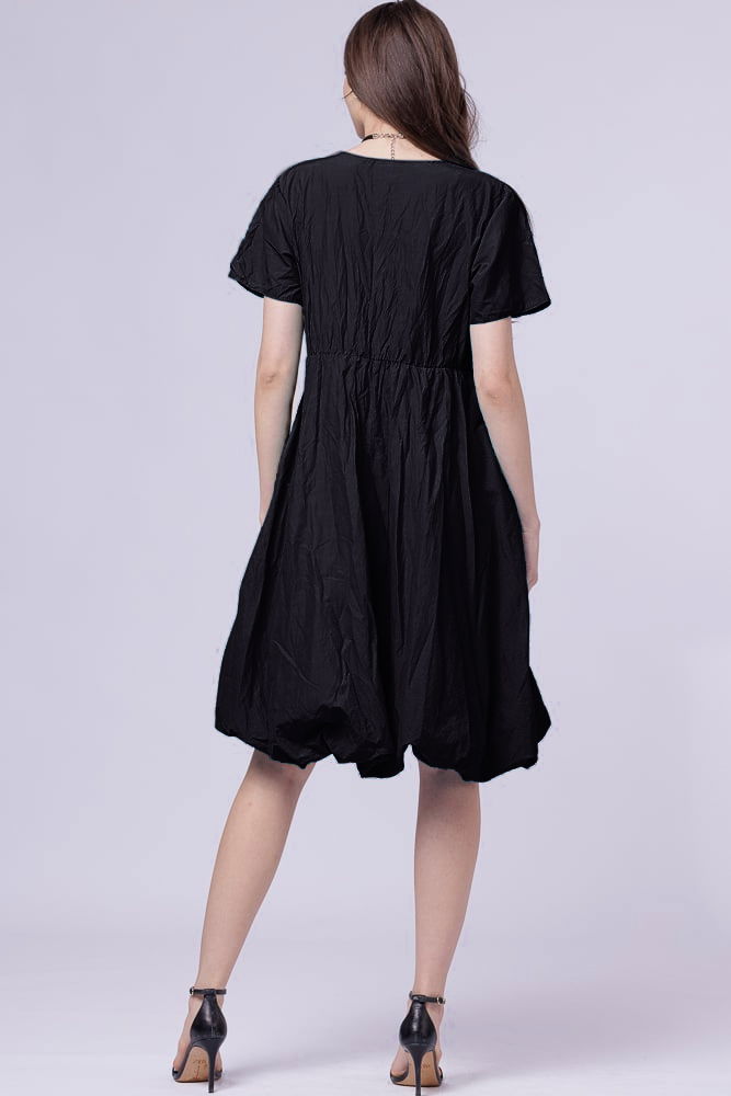 Shopika Romania Rochie gogosar din vascoza creponata, taiata in talie, neagra