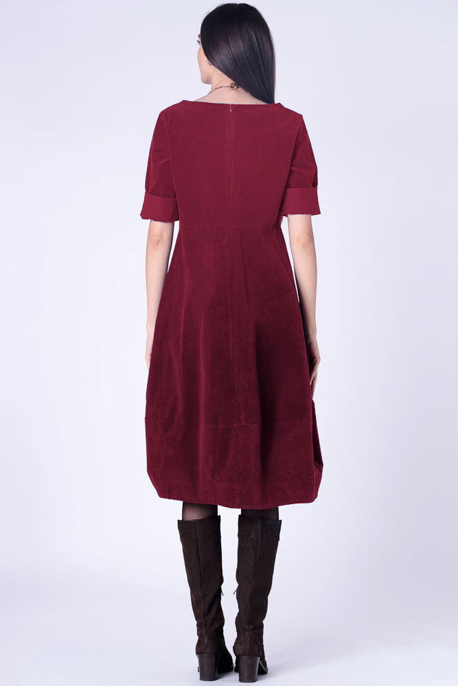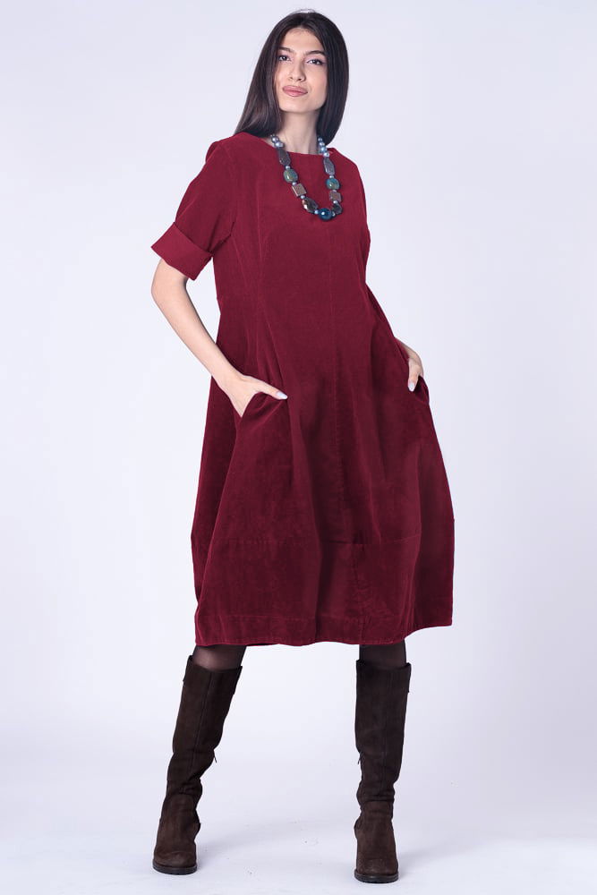 Shopika Rochie lalea cambrata, cu fermoar, din catifea reiata bordo