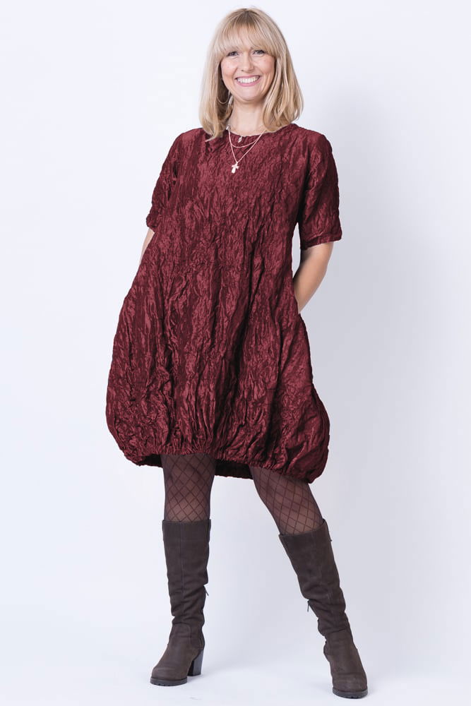 Shopika Romania Rochie midi gogosar din tafta cu memorie, bordo metalizat