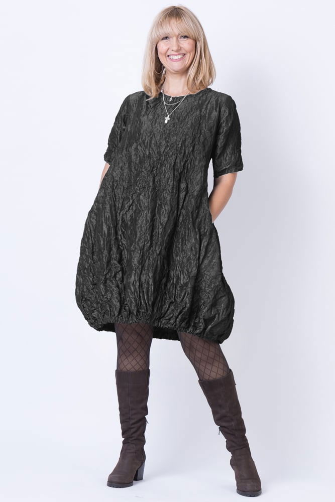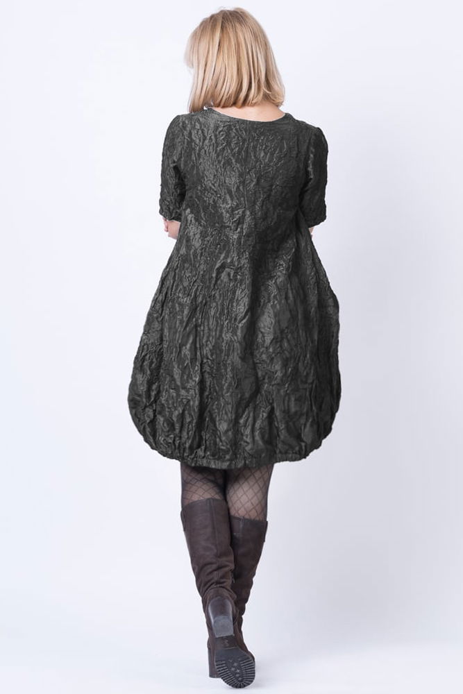 Shopika Romania Rochie midi gogosar din tafta cu memorie, gri inchis metalizat