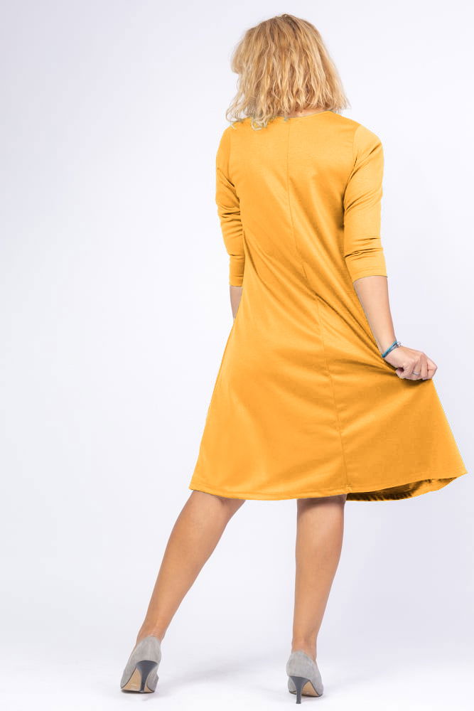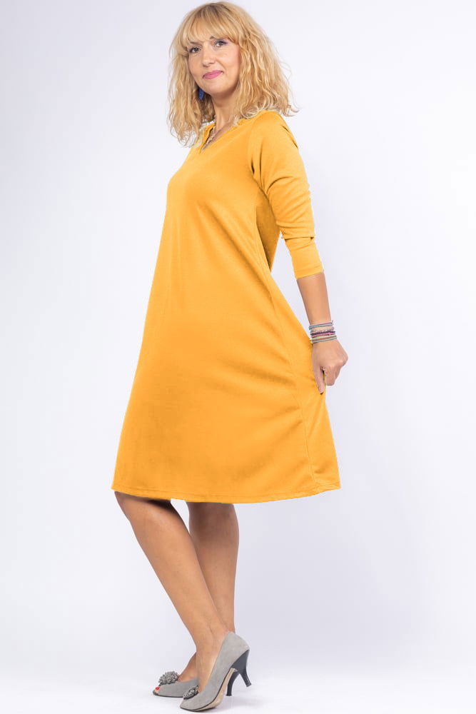 Pierino Rochie uni galbena `A line` midi, cu decolteu traditional