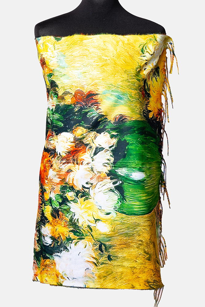 Shopika Esarfa cashmere cu doua fete cu imprimeu natura statica cu crizanteme in vaza