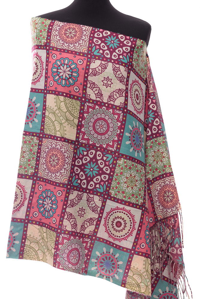 Shopika Esarfa casmir dreptunghiulara cu patrate modele marocane in nuante bordo