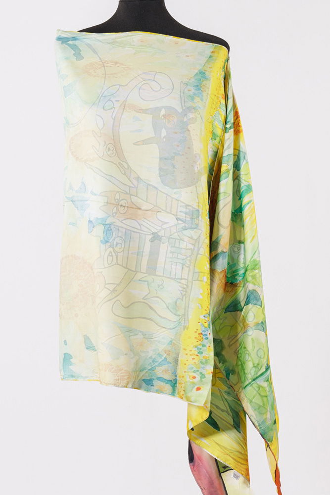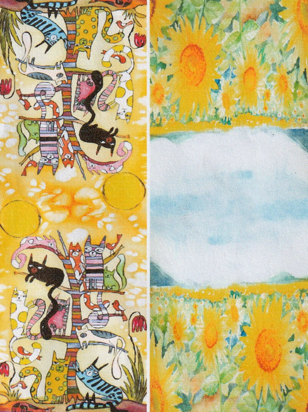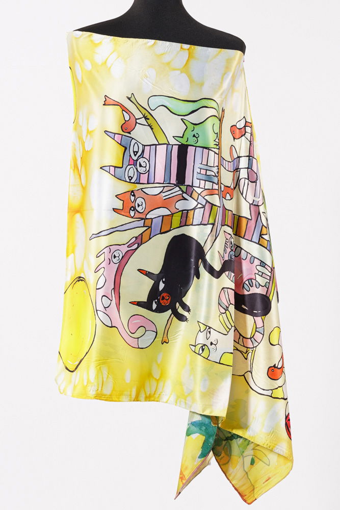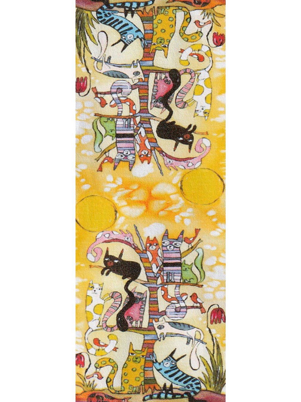 Shopika Esarfa cu doua fete, din matase, cu imprimeu diferite pisici in copac si floarea soarelui