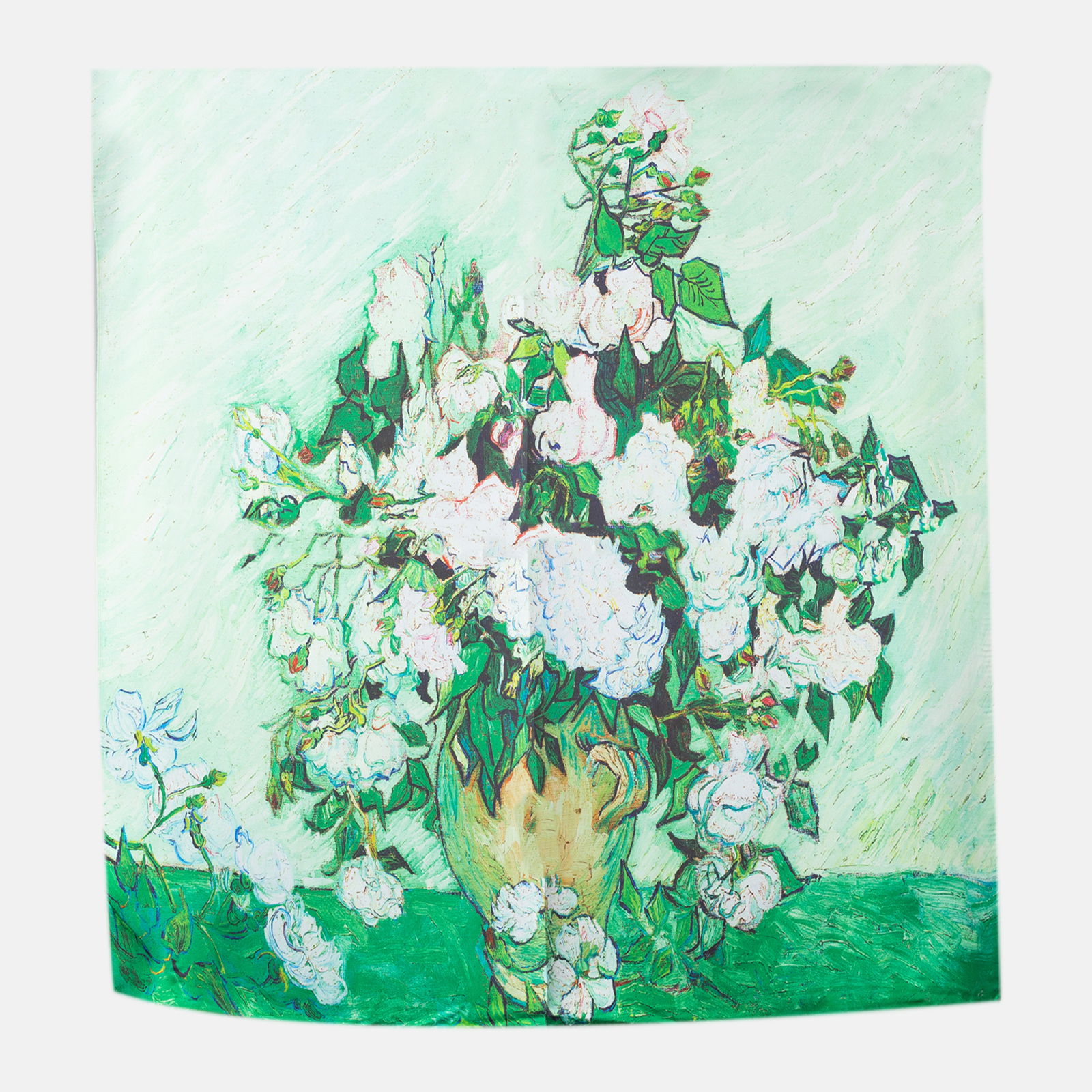 Esarfa patrata cu o singura fata imprimata cu reproducerea dupa " Vaza cu trandafiri albi" de Van Gogh