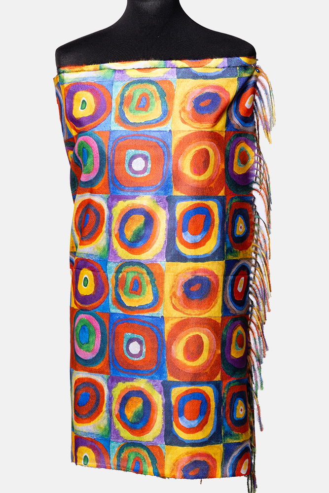 Shopika Esarfa vascoza cu fir din lurex, cu imprimeu dupa pictura moderna a lui Kandinsky
