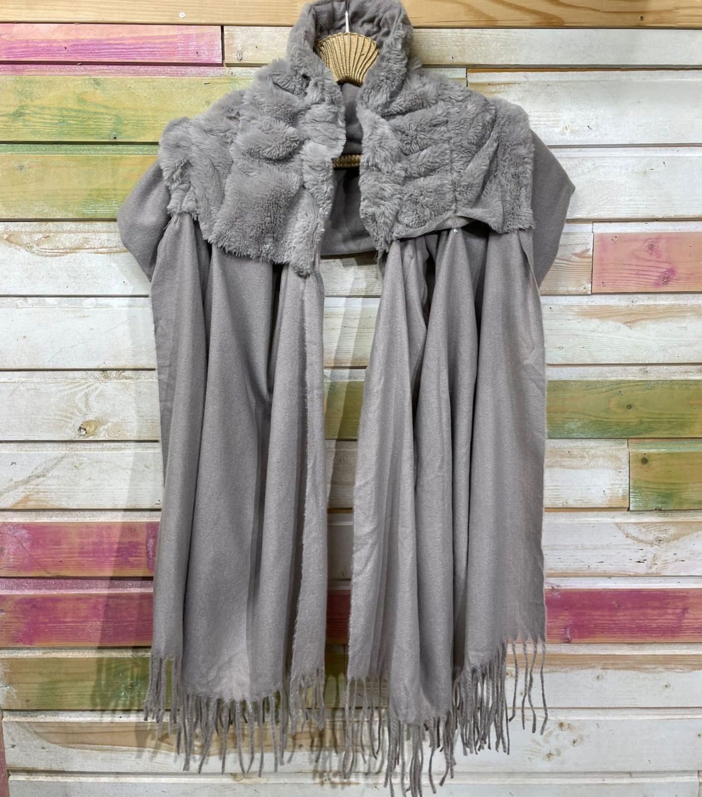 Shopika Eșarfă cu blăniță ecologică pe centru și franjuri decorative, gri deschis
