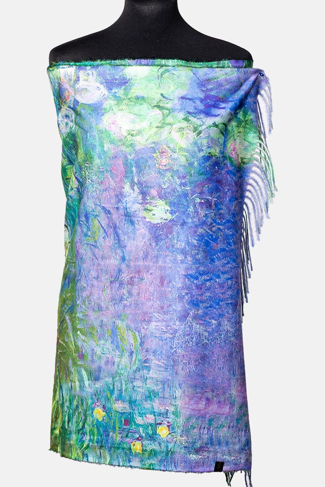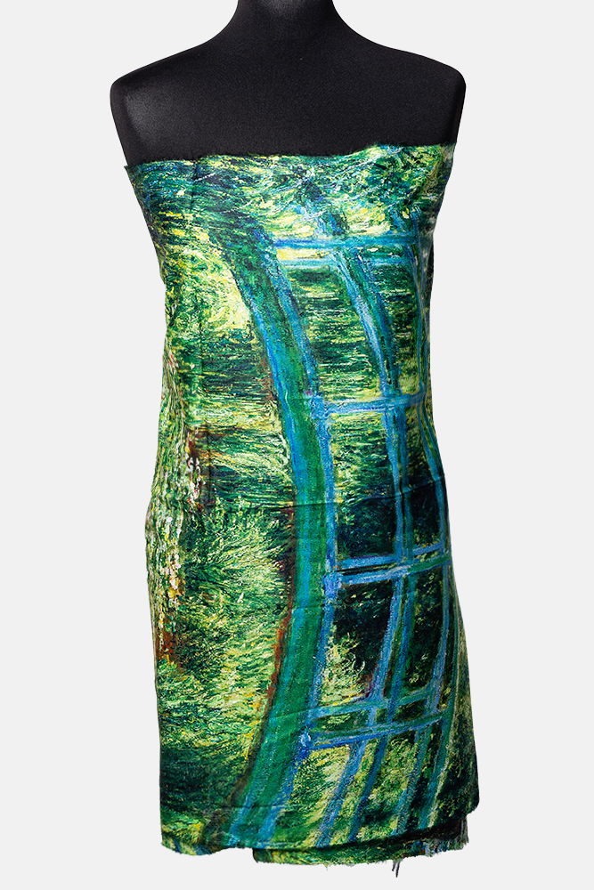 Shopika Esarfa cashmere cu doua fete imprimata cu un peisaj de padure cu podet