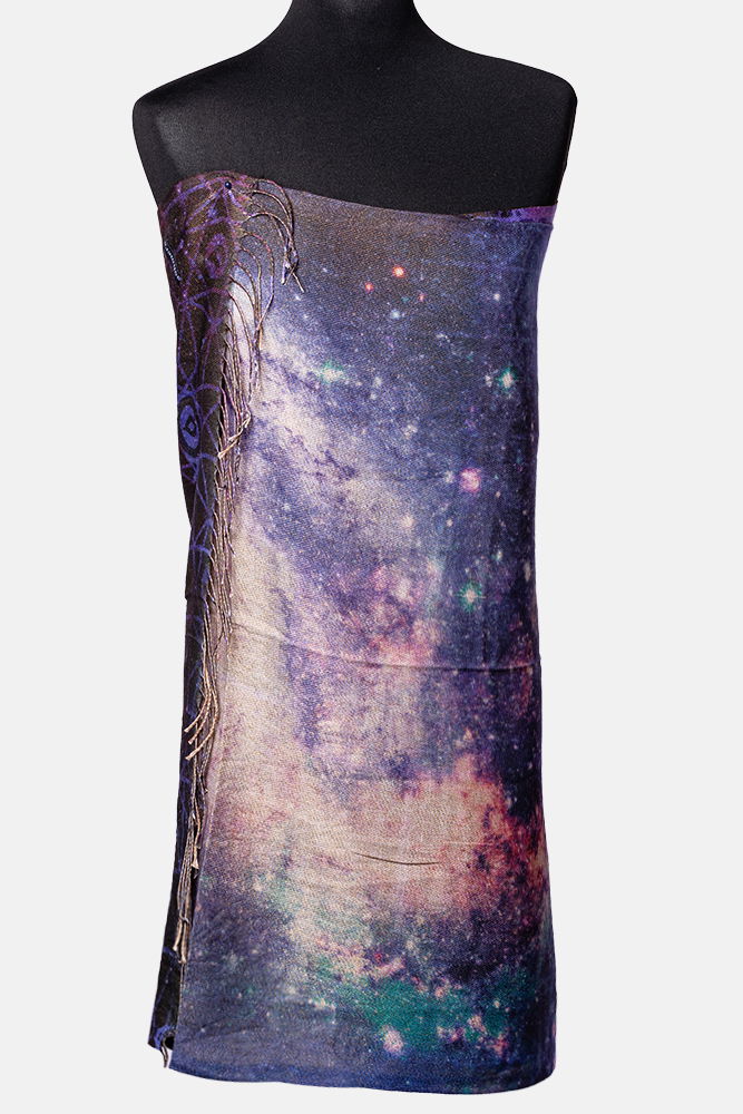Shopika Esarfa cashmere cu fir din lurex, nuante de indigo Galaxy