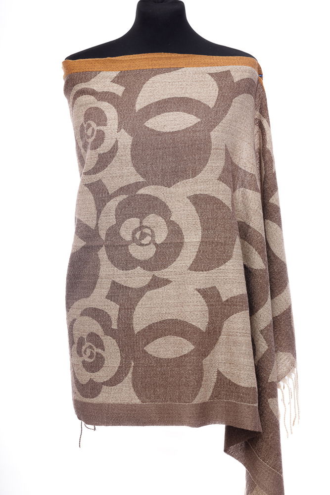 Shopika Esarfa casmir cu imprimeu floral stilizat pe fond maro