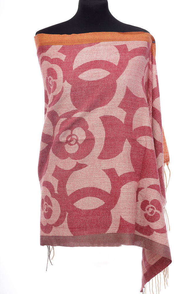 Shopika Esarfa casmir cu imprimeu floral stilizat pe fond rosu inchis