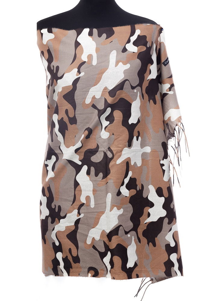 Shopika Esarfa casmir unisex cu imprimeu army pe fond camel