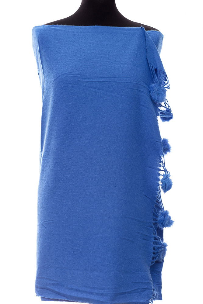 Shopika Esarfa din casmir cu ciucuri din blanita naturala, albastra