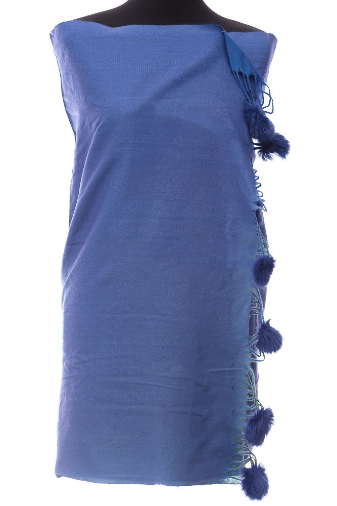 Shopika Esarfa din casmir cu fata dubla si ciucuri din blanita naturala, degrade-albastru