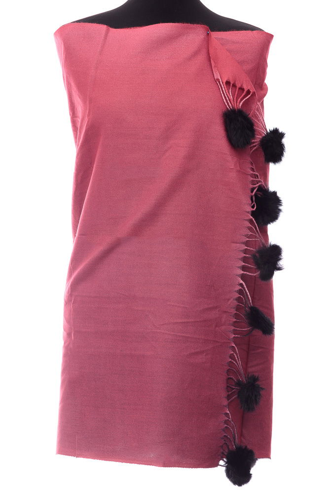 Shopika Esarfa din casmir cu fata dubla si ciucuri din blanita naturala, degrade negru-bordo