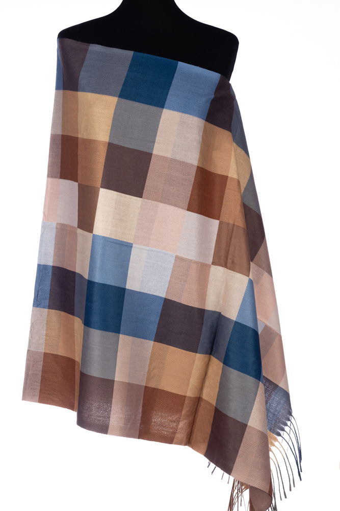 Shopika Esarfa din casmir cu patrate in nuante de albastru, camel si bej