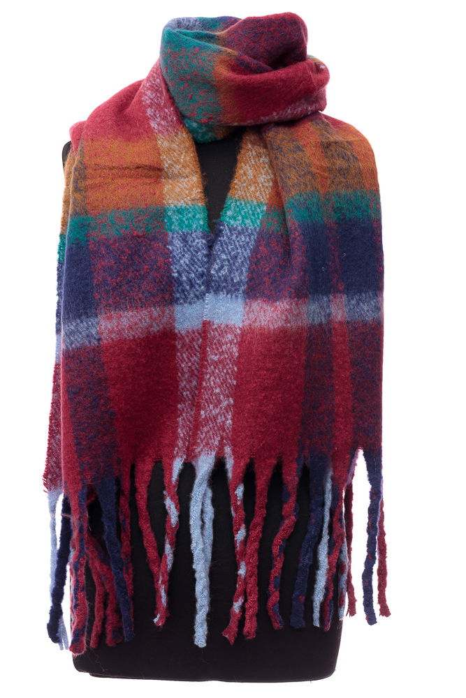 Fular cu imprimeu cu carouri in nuante de bordo, verde si bleumarin