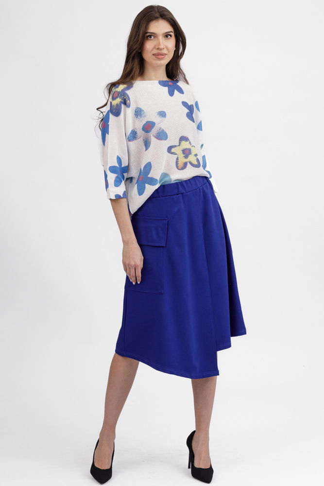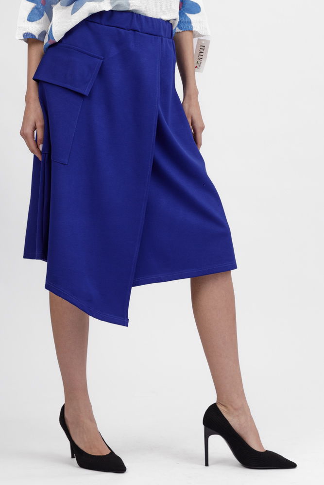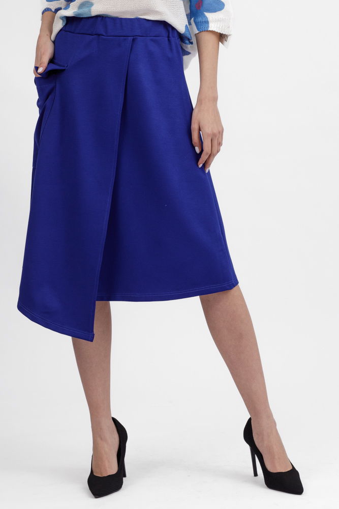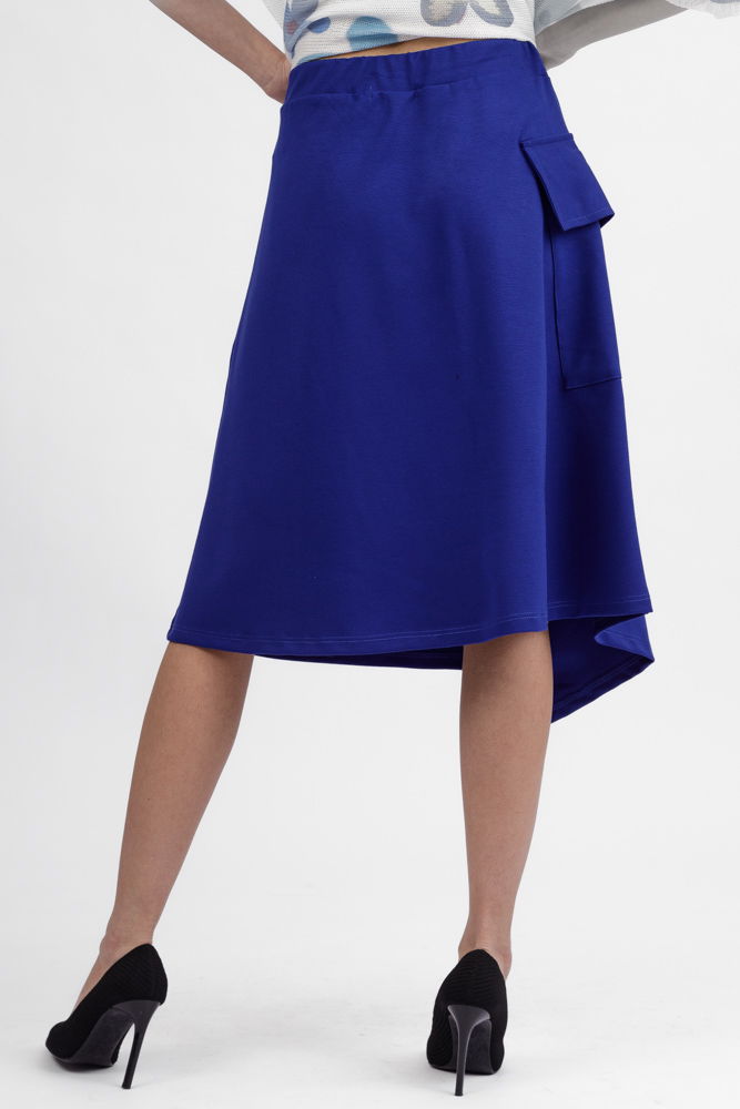 Pierino Fusta albastra midi petrecuta din punto milano, cu buzunar aplicat si colt