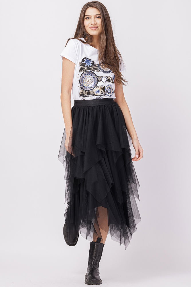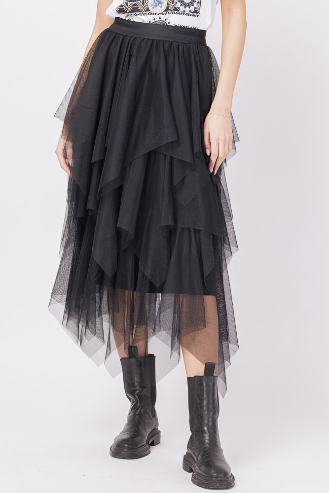 Shopika Fusta din tulle, in straturi inegale, lunga, neagra
