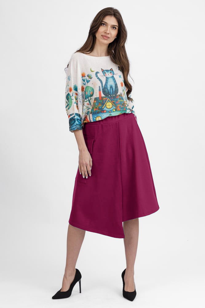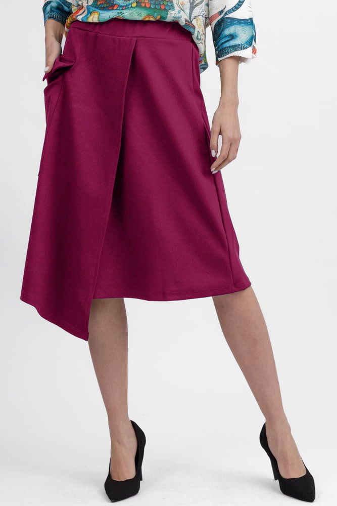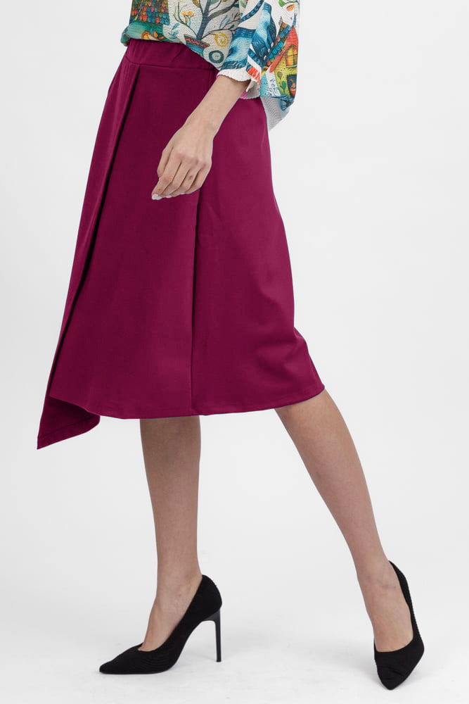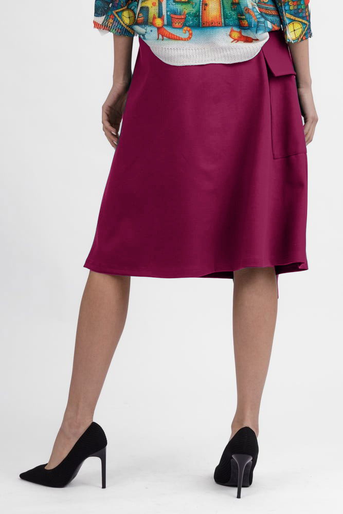 Pierino Fusta fucisia inchis midi petrecuta din punto milano, cu buzunar aplicat si colt