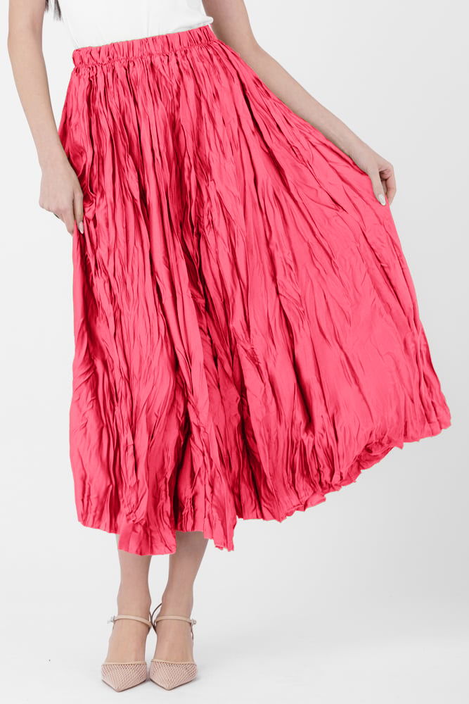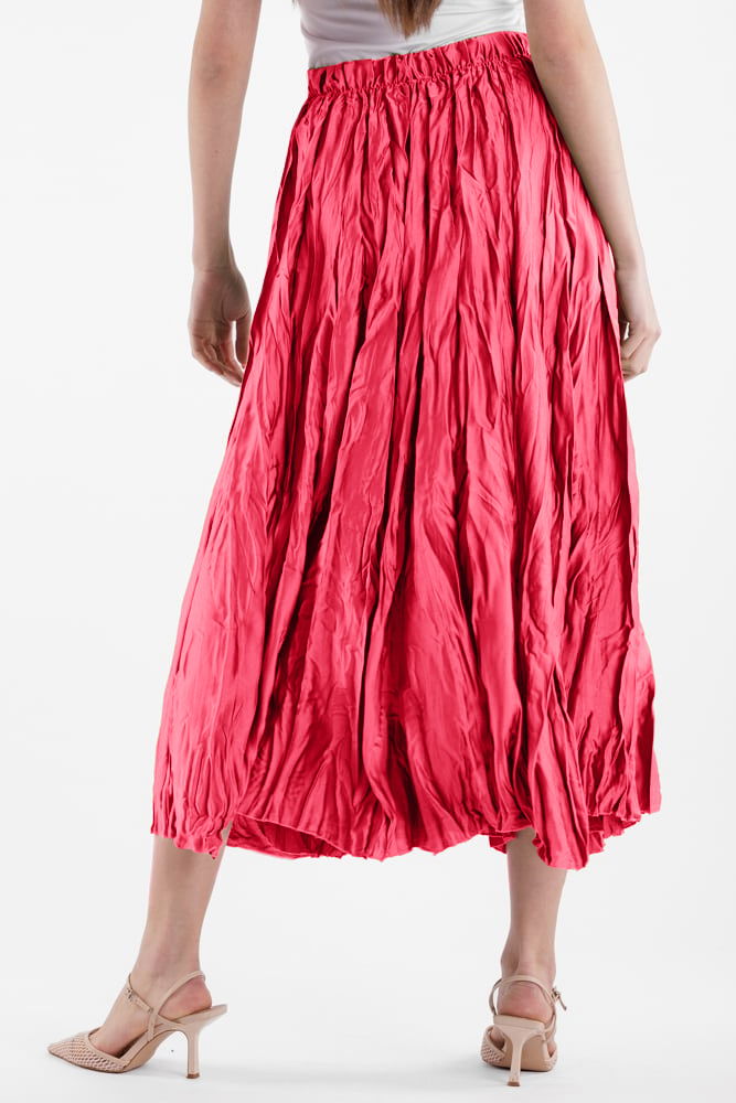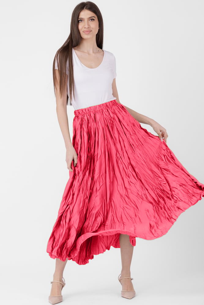 Fusta lunga, ampla, creponata, lucios-satinata, fucsia deschis