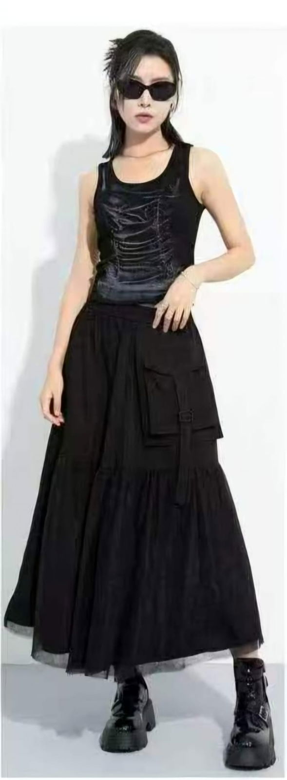 Aceasta fusta lunga impresioneaza prin croiala ampla si textura usoara, care creeaza o silueta fluida si feminina. Straturile subtile adauga volum si miscare, iar designul relaxat pastreaza un aer modern si natural.