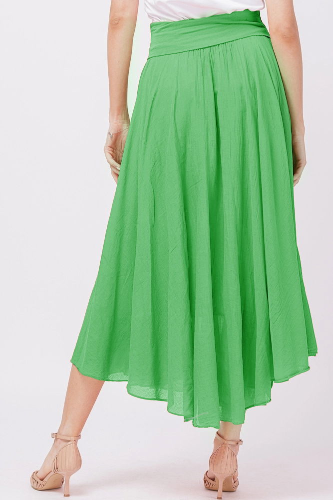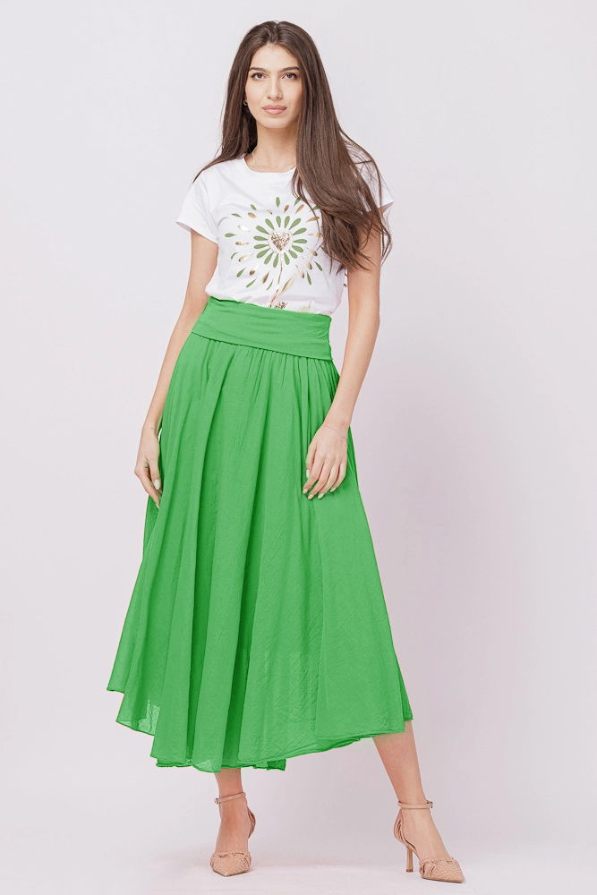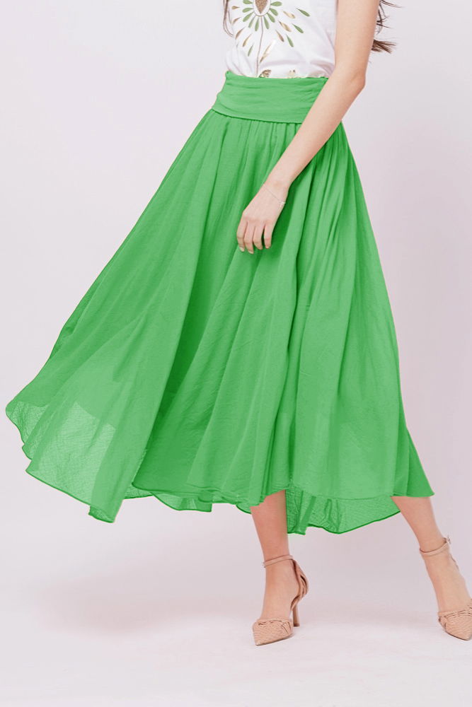 Shopika Fusta lunga verde crud, ampla, clos, din batist de bumbac