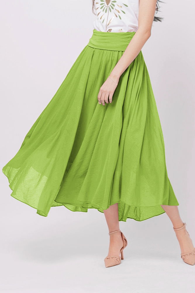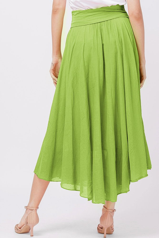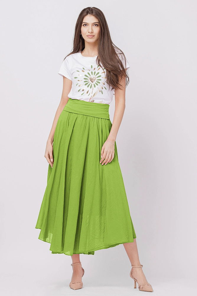 Shopika Fusta lunga verde oliv, ampla, clos, din batist de bumbac