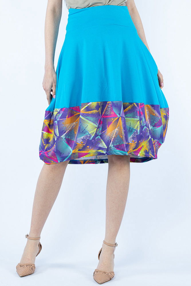 Pierino Fusta turcoaz din jerseu, midi, tip lalea, cu imprimeu la poale