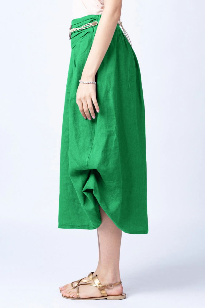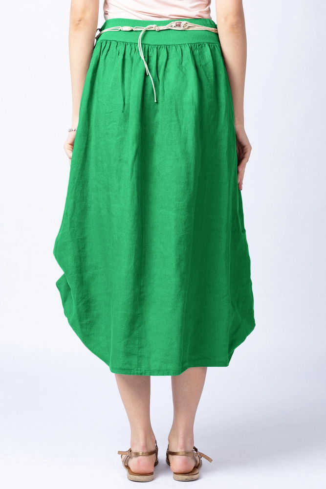 Shopika Fusta lunga verde crud cu poale prinse, din in, cu o curea fancy