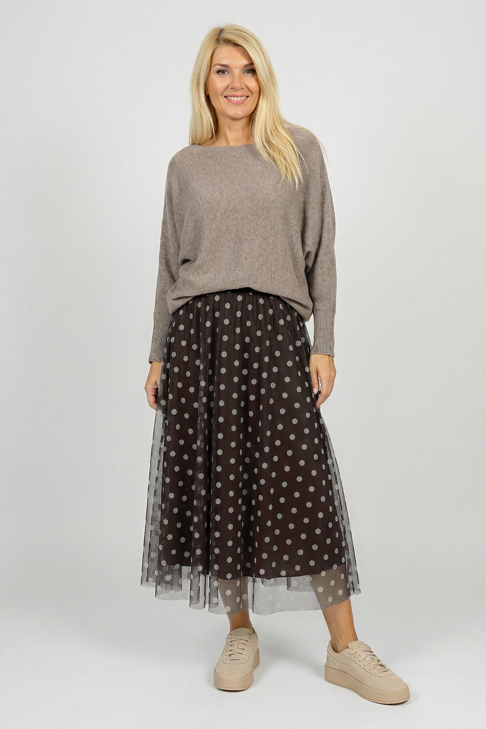 Shopika Fusta clos din tulle, maro cu buline bej
