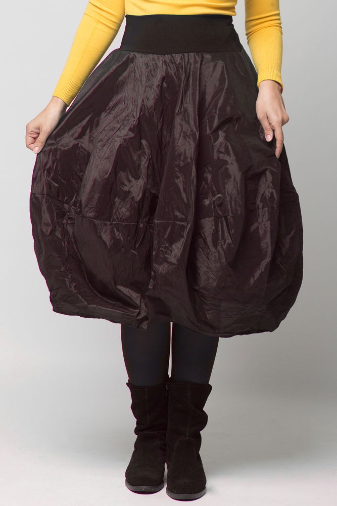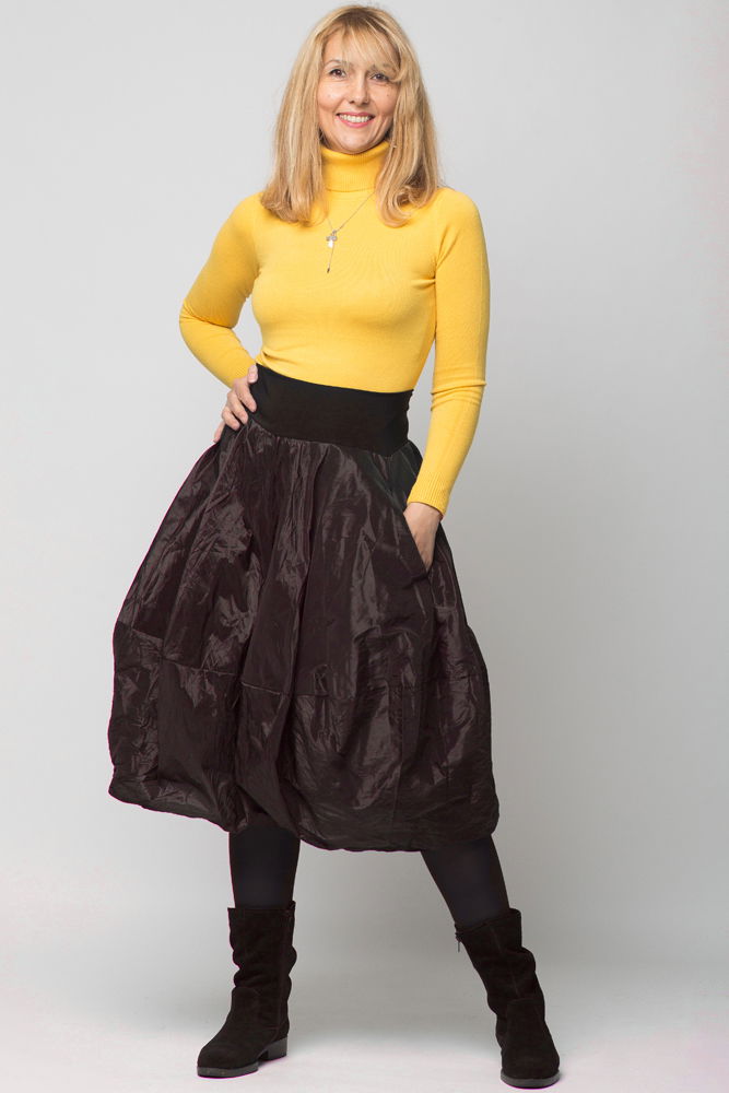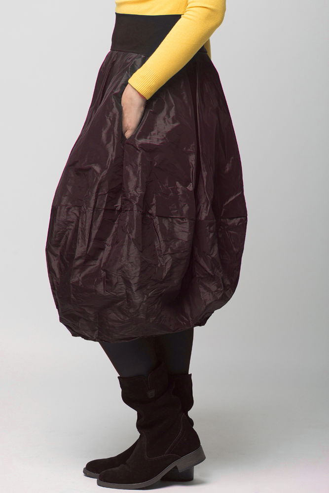 Fusta tip lalea este confectionata din tafta cu fir metalic, cu memorie. ce pastreaza forma pe care i-o dai, astfel o poti umfla sau o poti tine mai pe langa corp, functie de restul elementelor tinutei tale si de inspiratia si starea de spirit din acea zi.