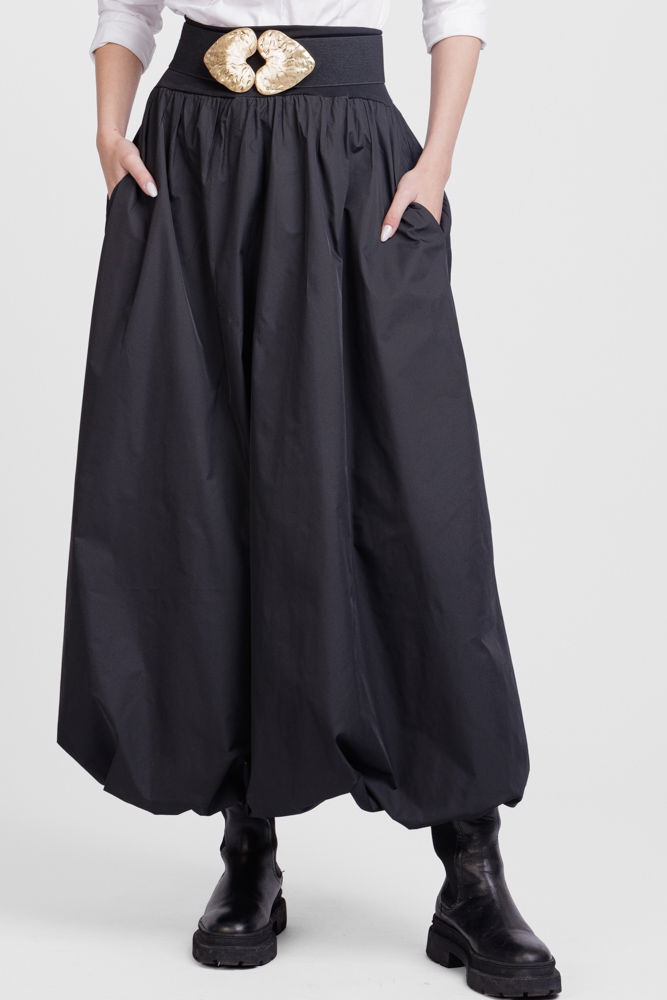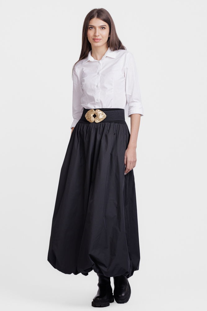Shopika Romania Fusta lunga gogosar, din in mercerizat, neagra
