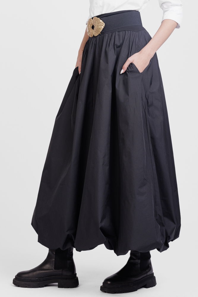 Fusta tip gogosar este confectionata din tafta incretita pe captuseala de plasa.