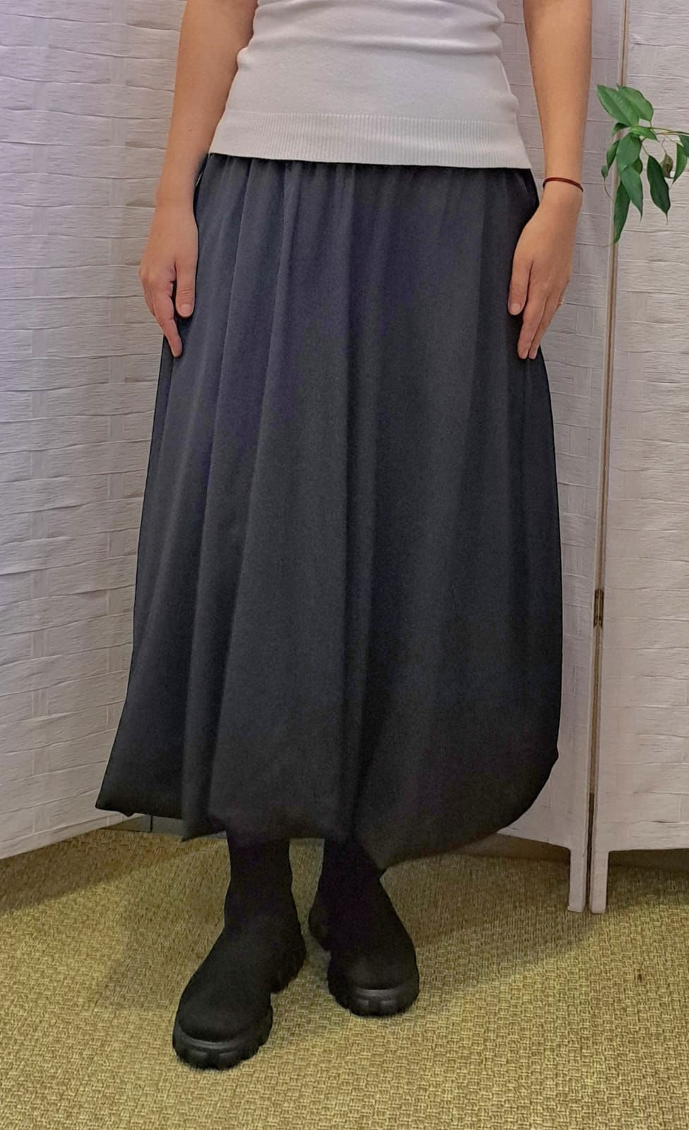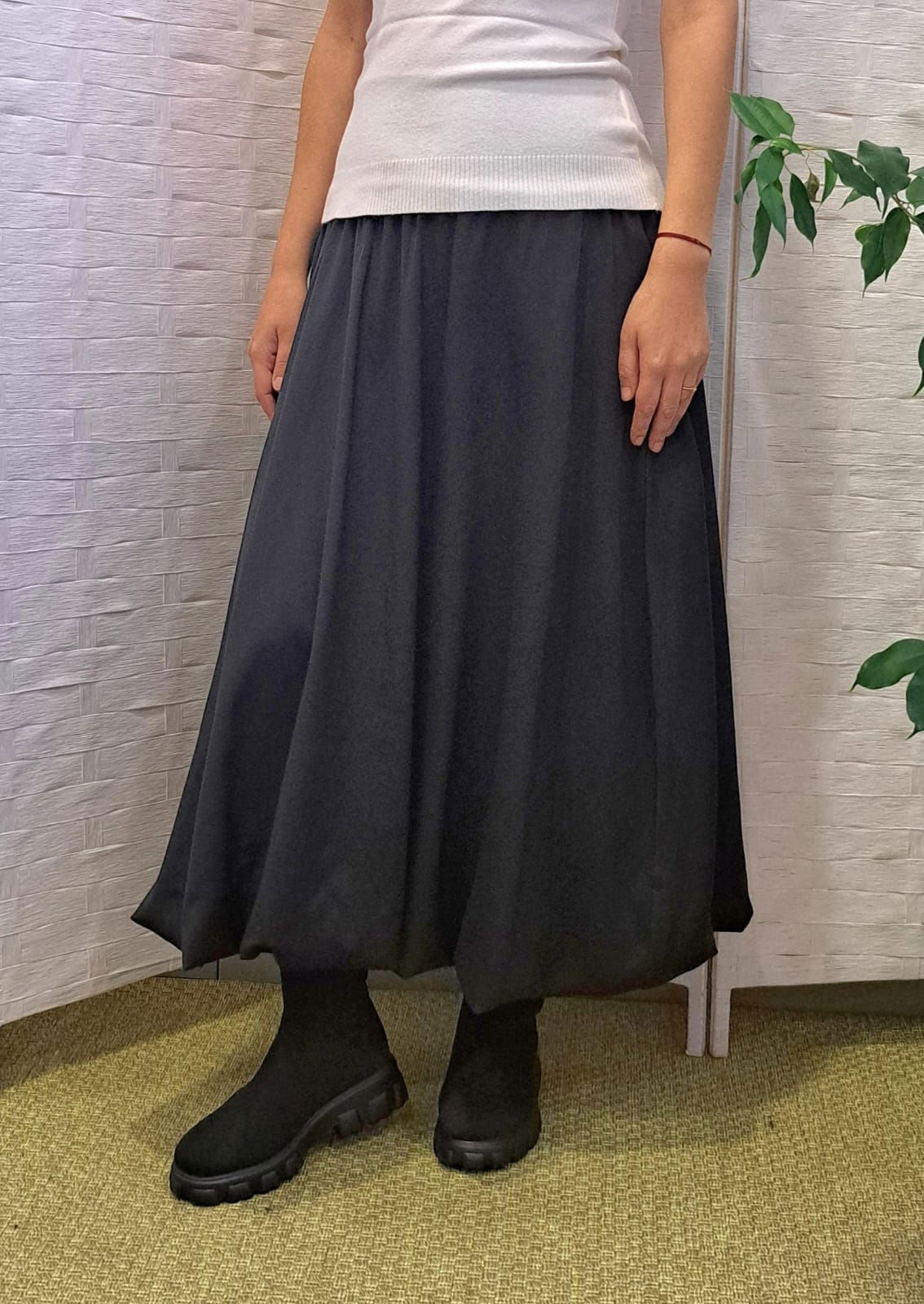 O fusta care redefineste simplitatea moderna. Textura ripsului ii ofera profunzime si rafinament, in timp ce volumul amplu creeaza un efect fluid, artistic, plin de personalitate. Este una dintre acele piese care transforma instant orice tinuta, fie ca alegi un pulover oversized, o camasa clasica sau un top minimalist. Confortabila, fluida si actuala — o fusta care promite sa fie purtata cu placere sezon dupa sezon. O piesa versatila, usor de purtat cu pulovere, camasi, bluze sau topuri minimaliste.