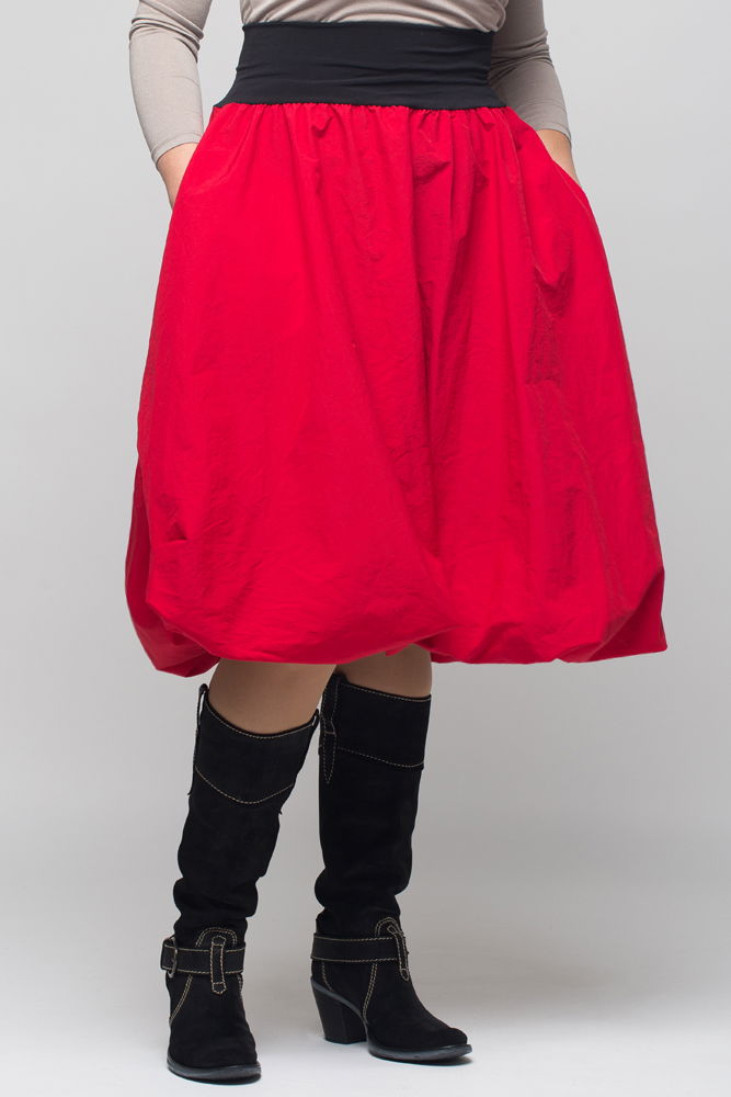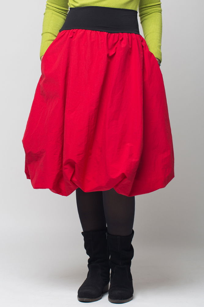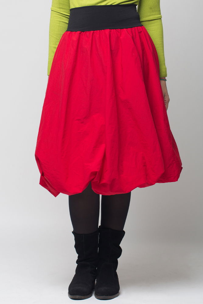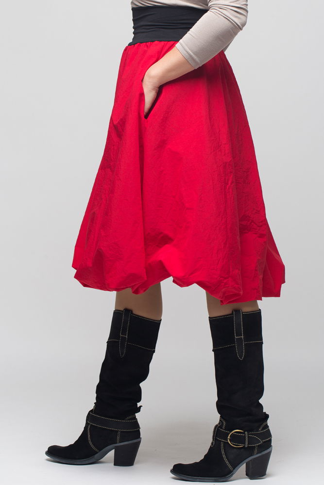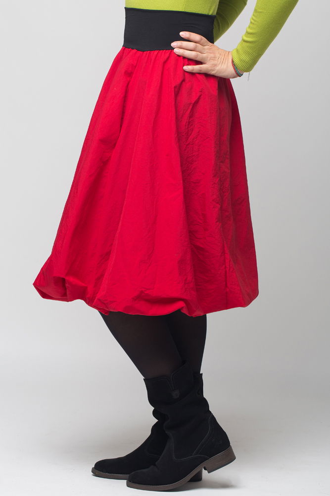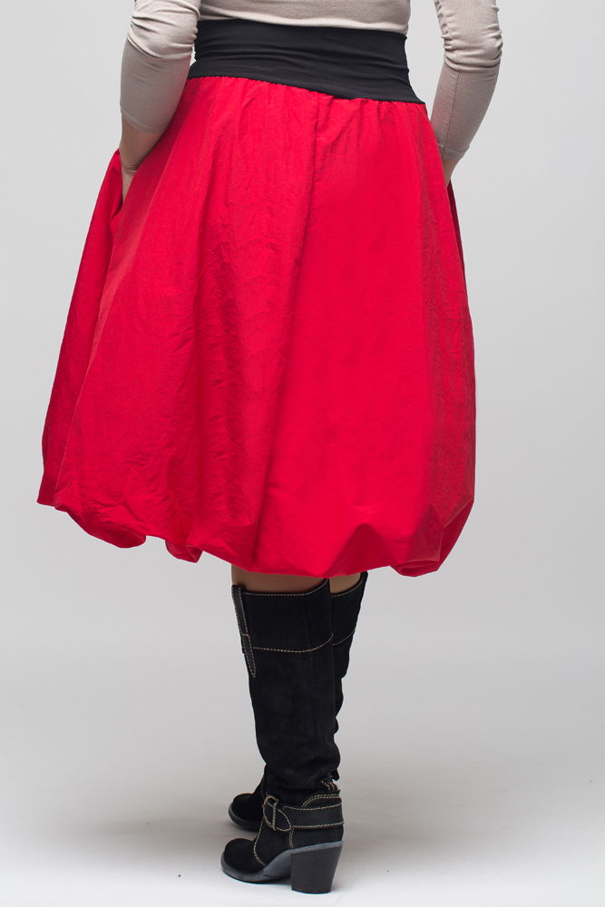 Shopika Romania Fusta rosie gogosar midi, din tafta cu fir metalic