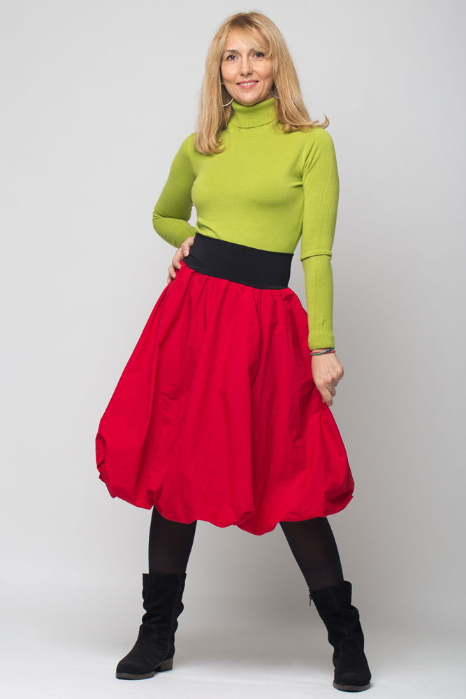 • In imagini fusta e purtata de doua modele, pentru a va face o imagine de cum arata pe o persoana mai inalta (1.75m) si pe o persoana cu inaltime medie (1.65 m)