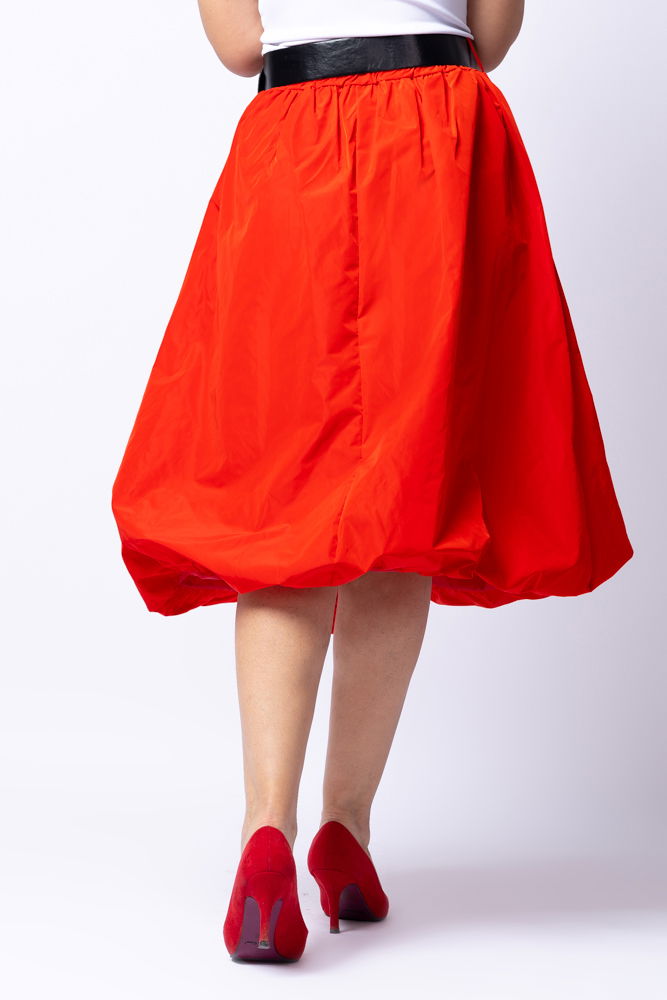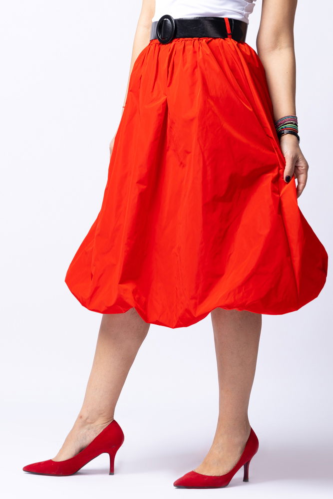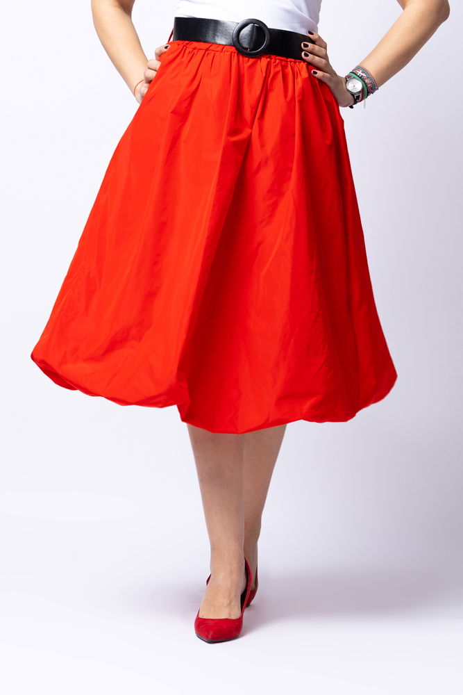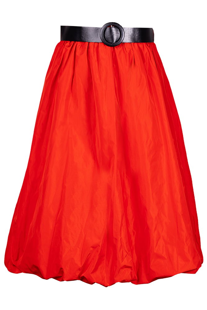Shopika Fusta rosie midi, tip gogosar, din tafta, cu curea
