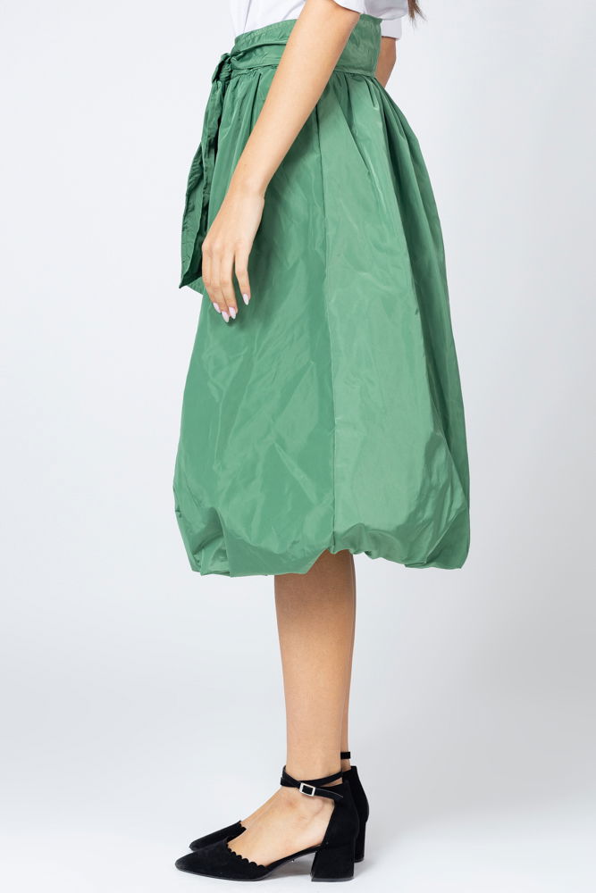 Shopika Fusta verde deschis midi, tip gogosar, din tafta, cu curea
