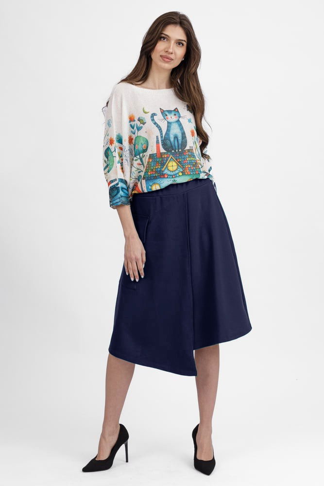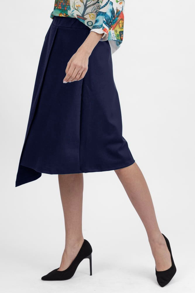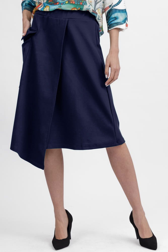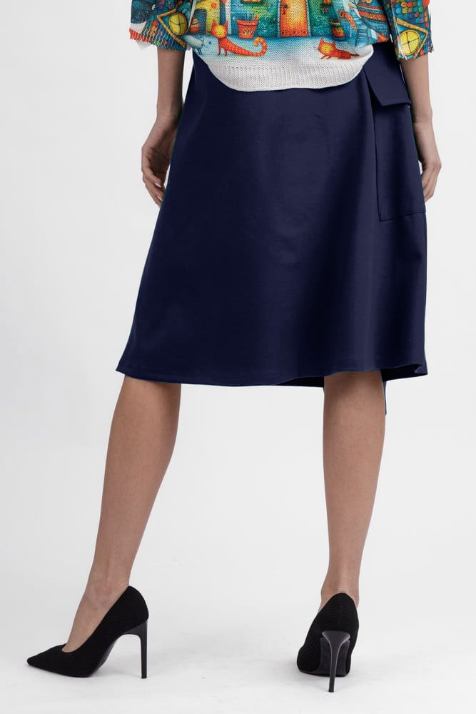 Pierino Fusta bleumarin midi petrecuta din punto milano, cu buzunar aplicat si colt
