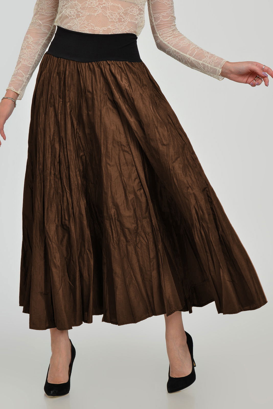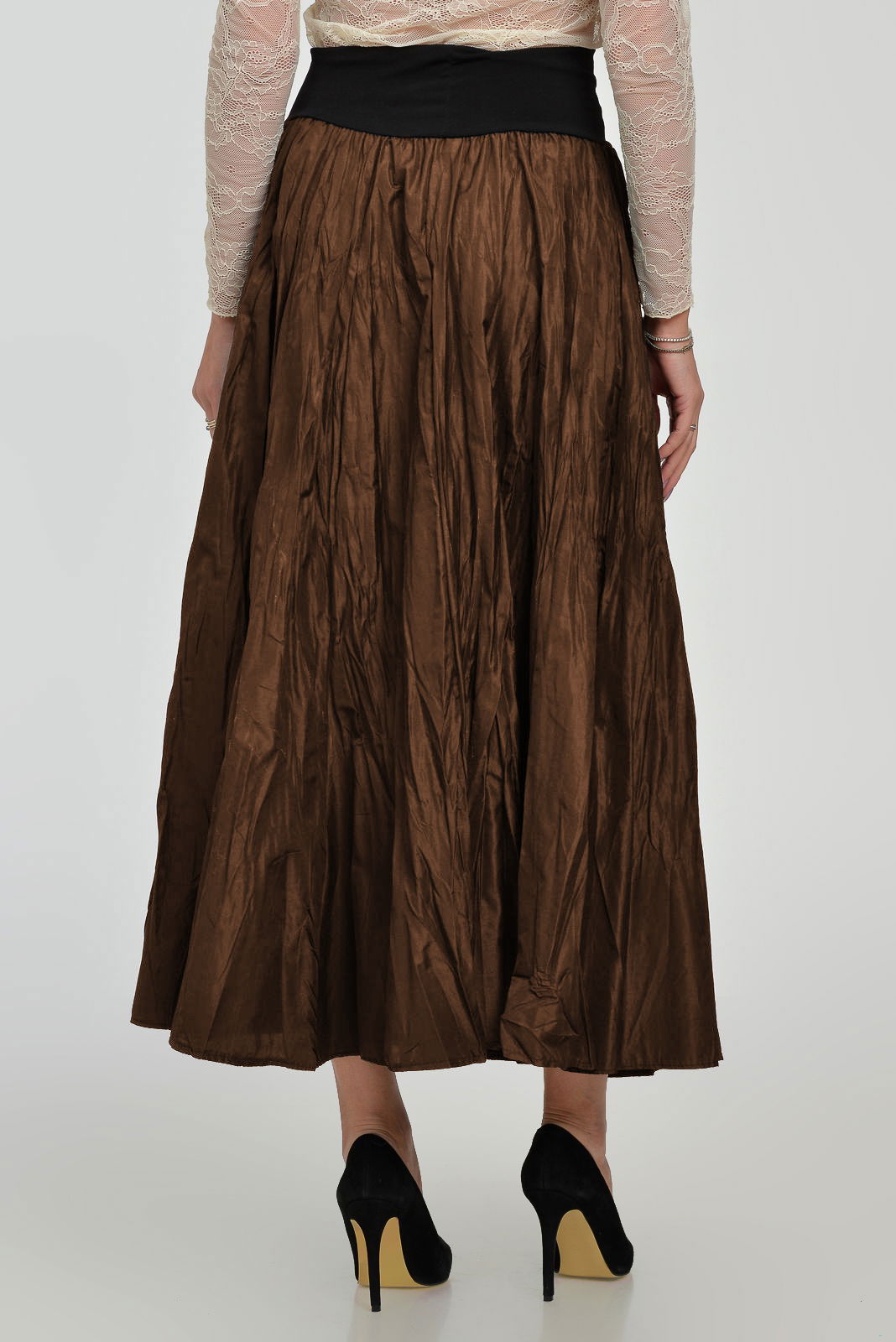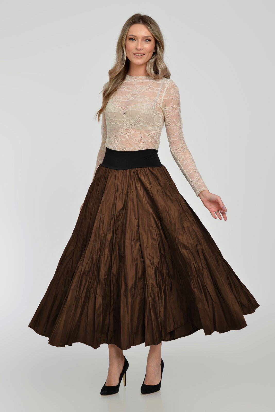 Shopika Romania Fusta lunga din vascoza, in 15 clini, din tafta maro roscat metalizat