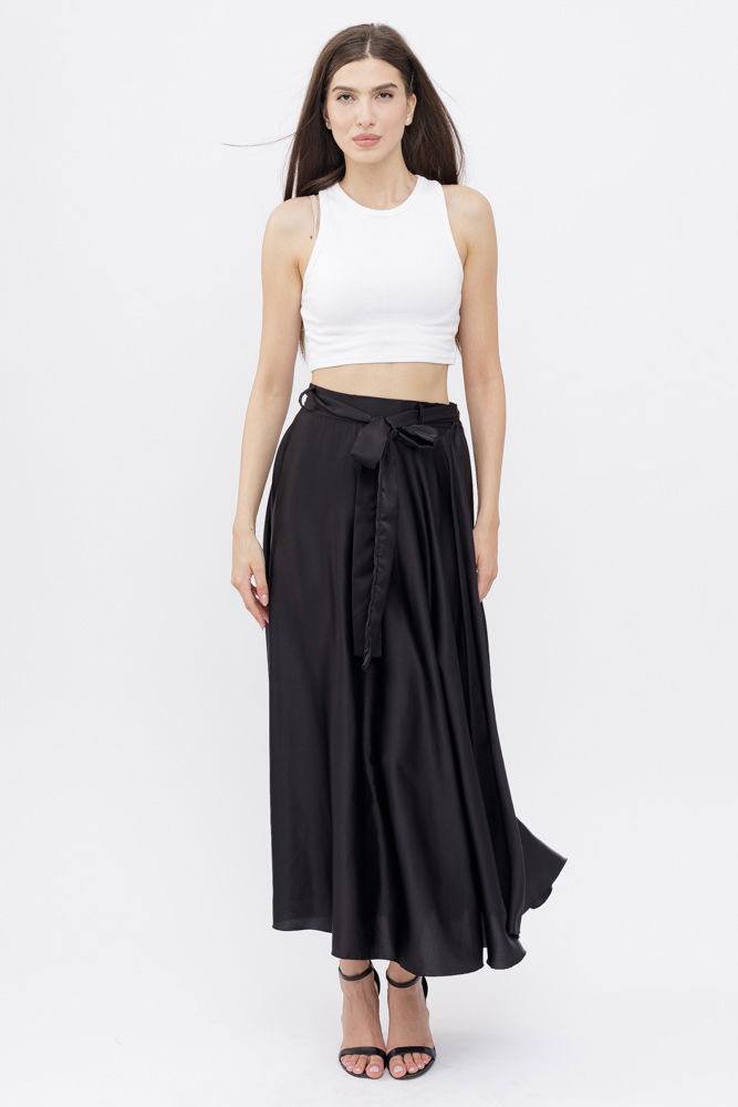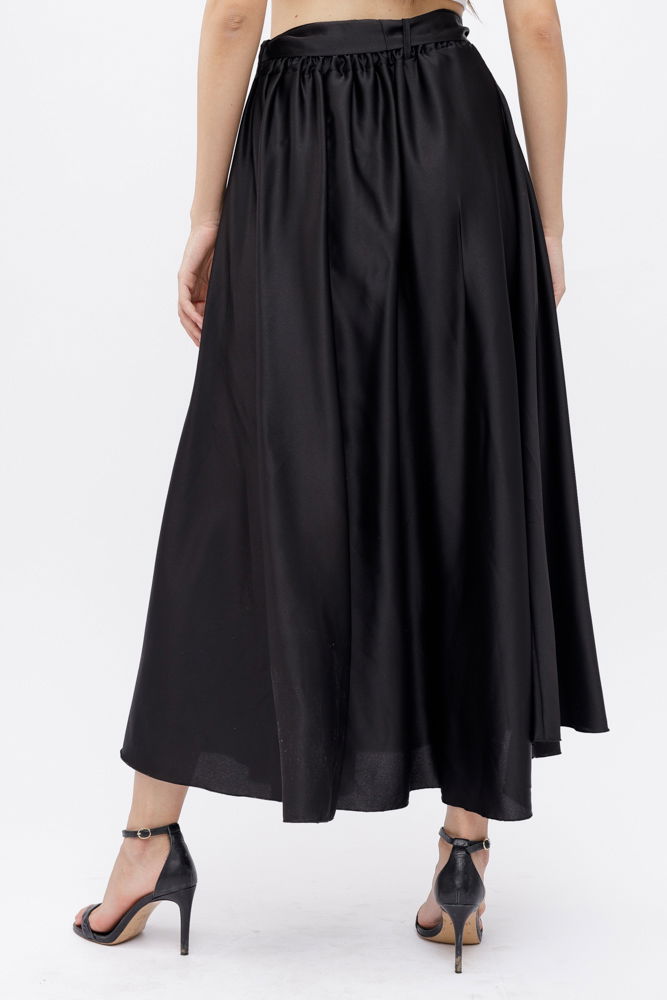 Shopika Fusta neagra din satin, cu elastic si cordon in talie
