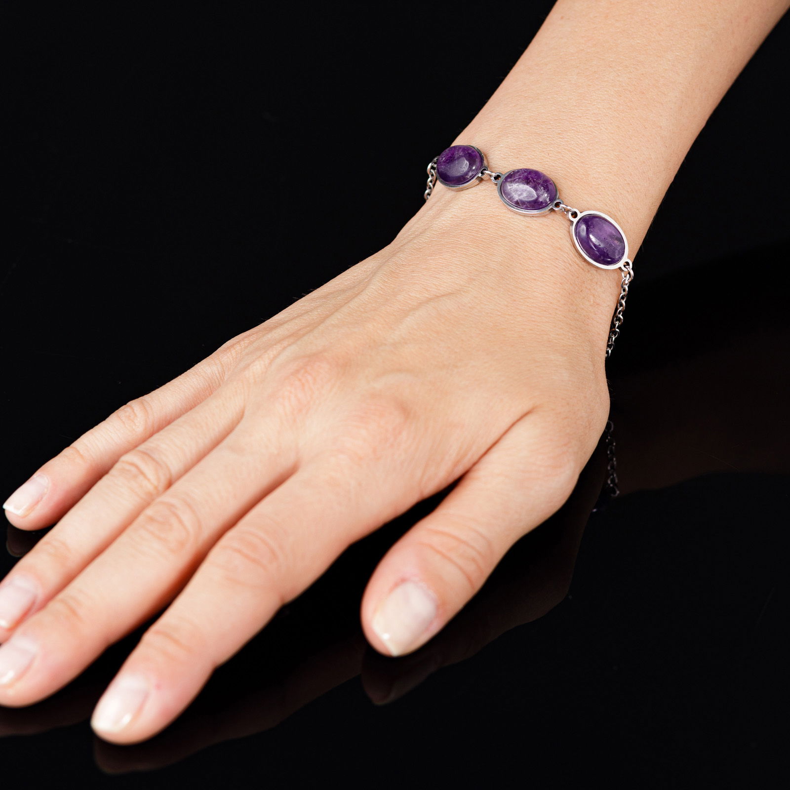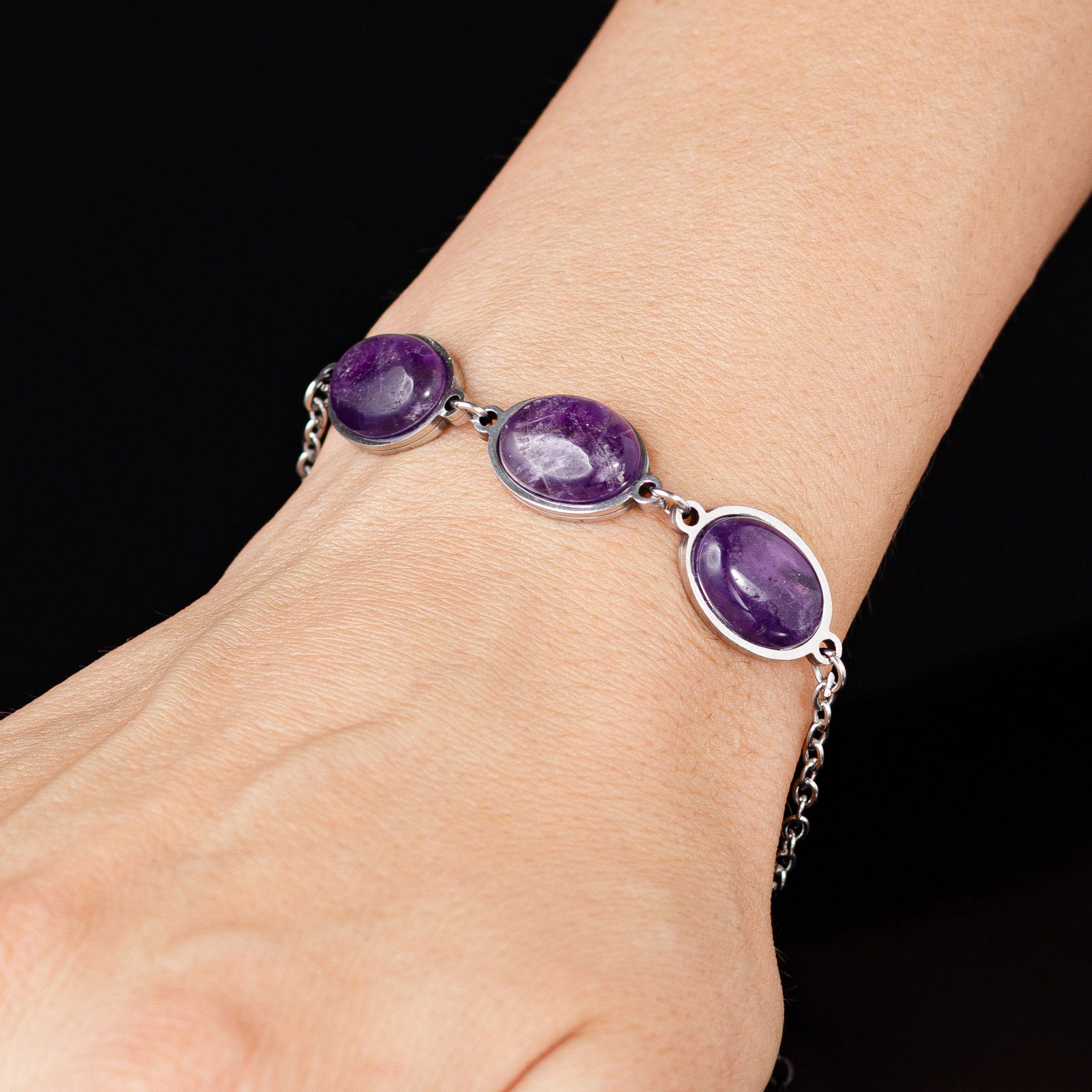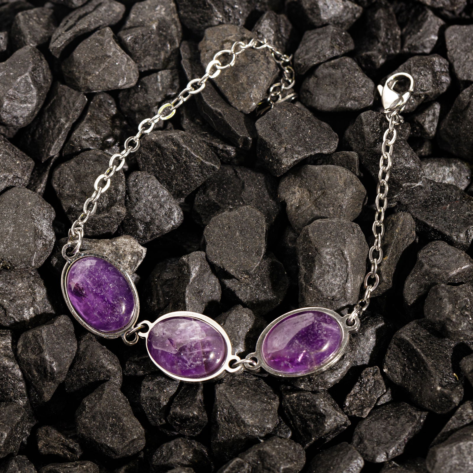 Bratara cu 3 elemente ovale din piatra naturala de ametist