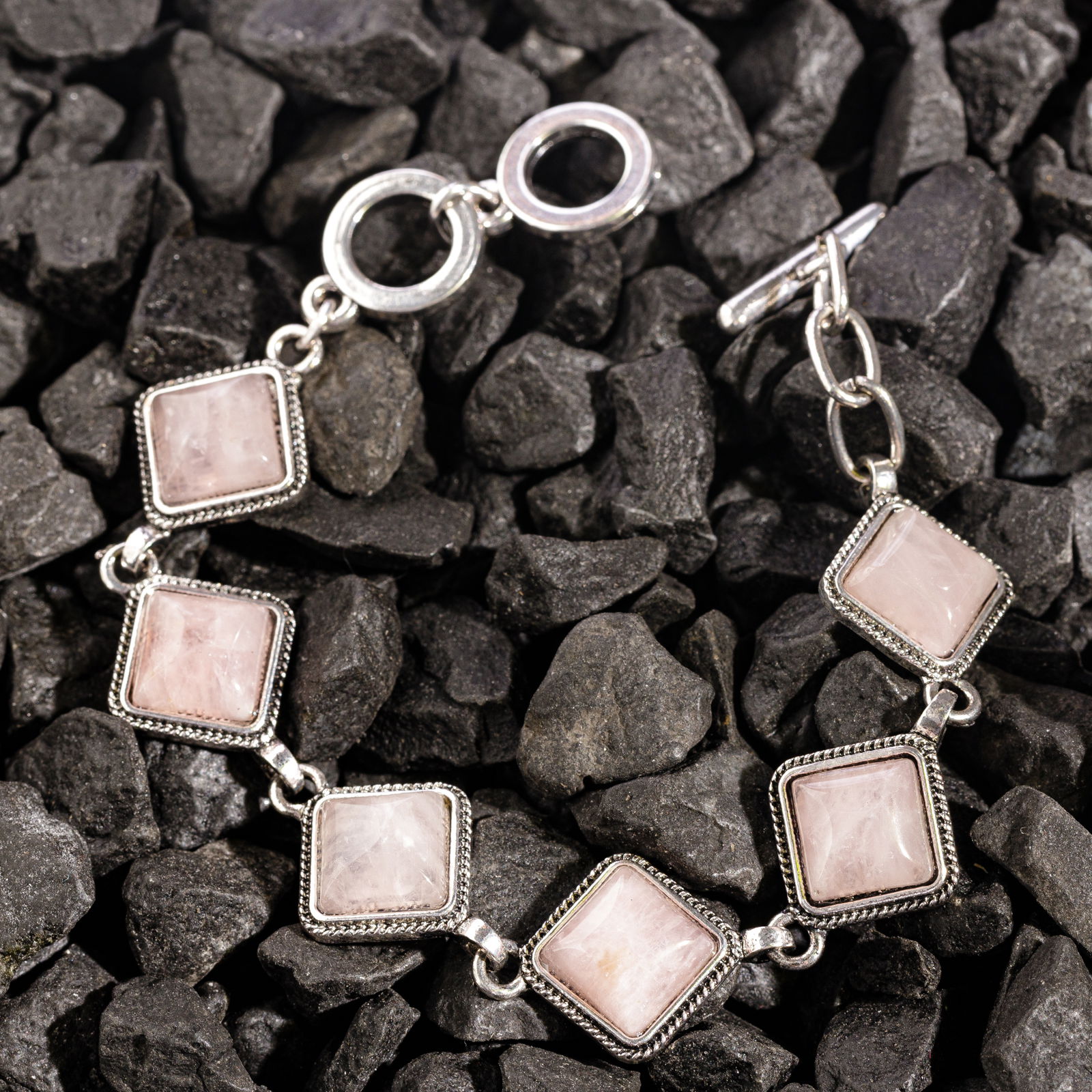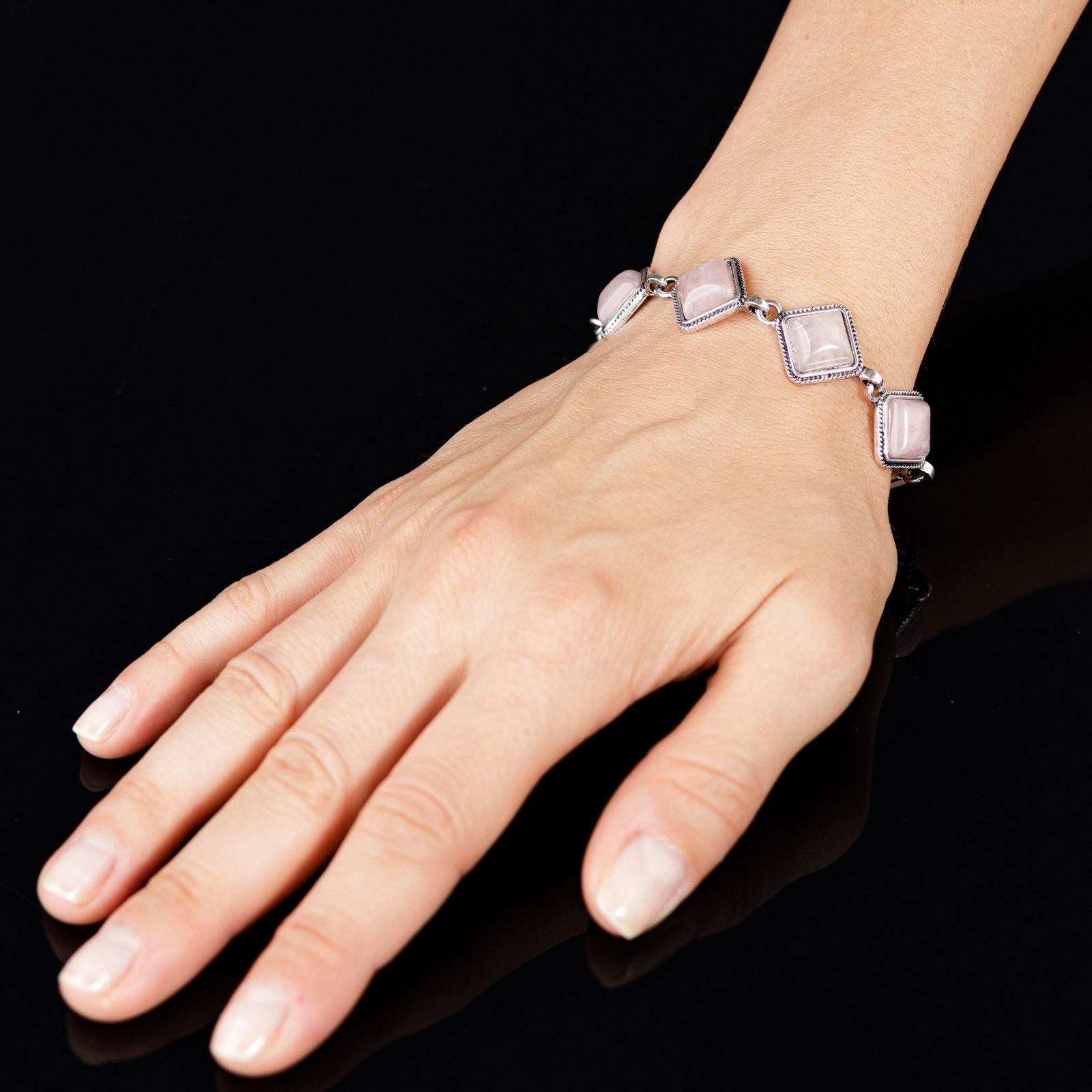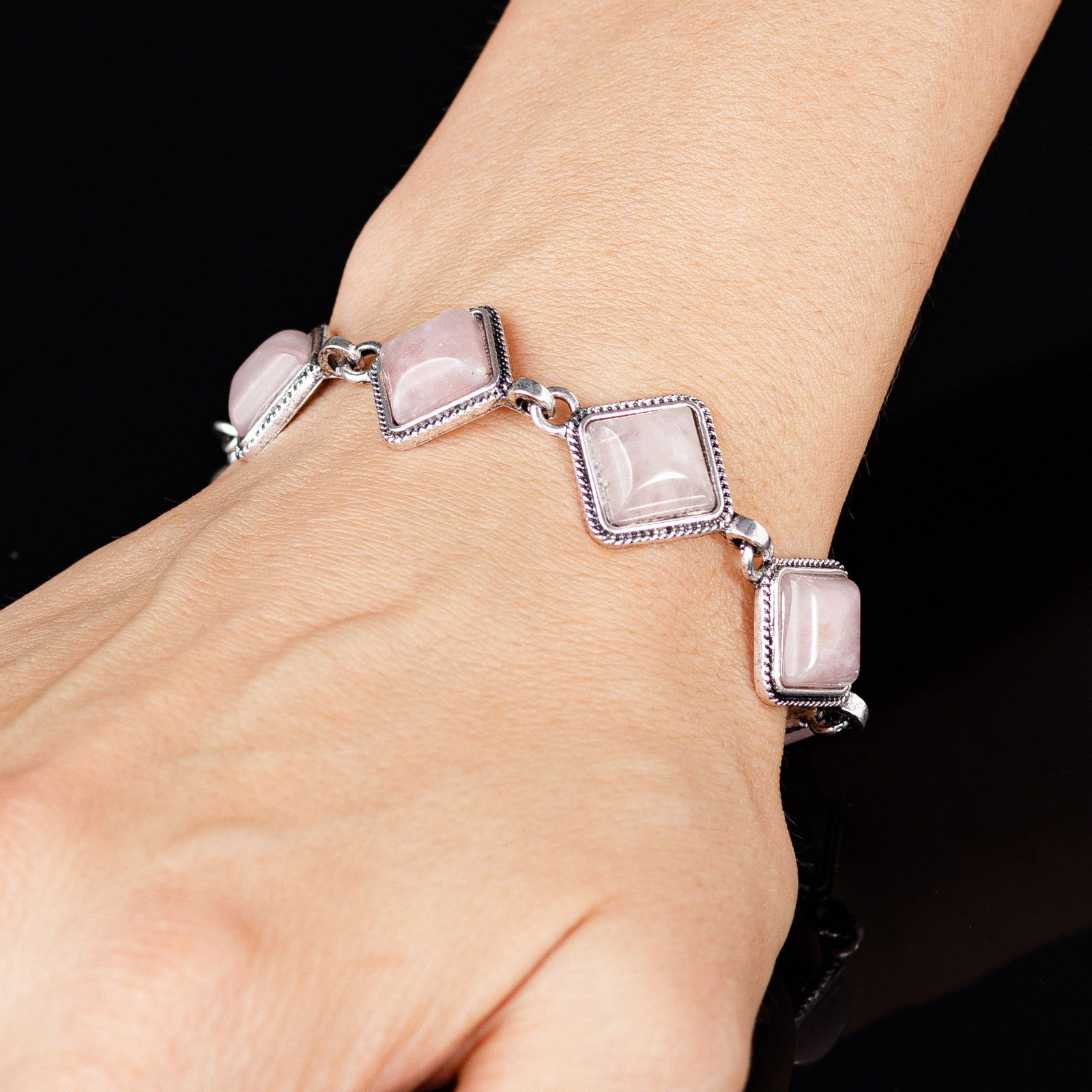 Bratara cu elemente rombice din piatra naturala de cuart roz