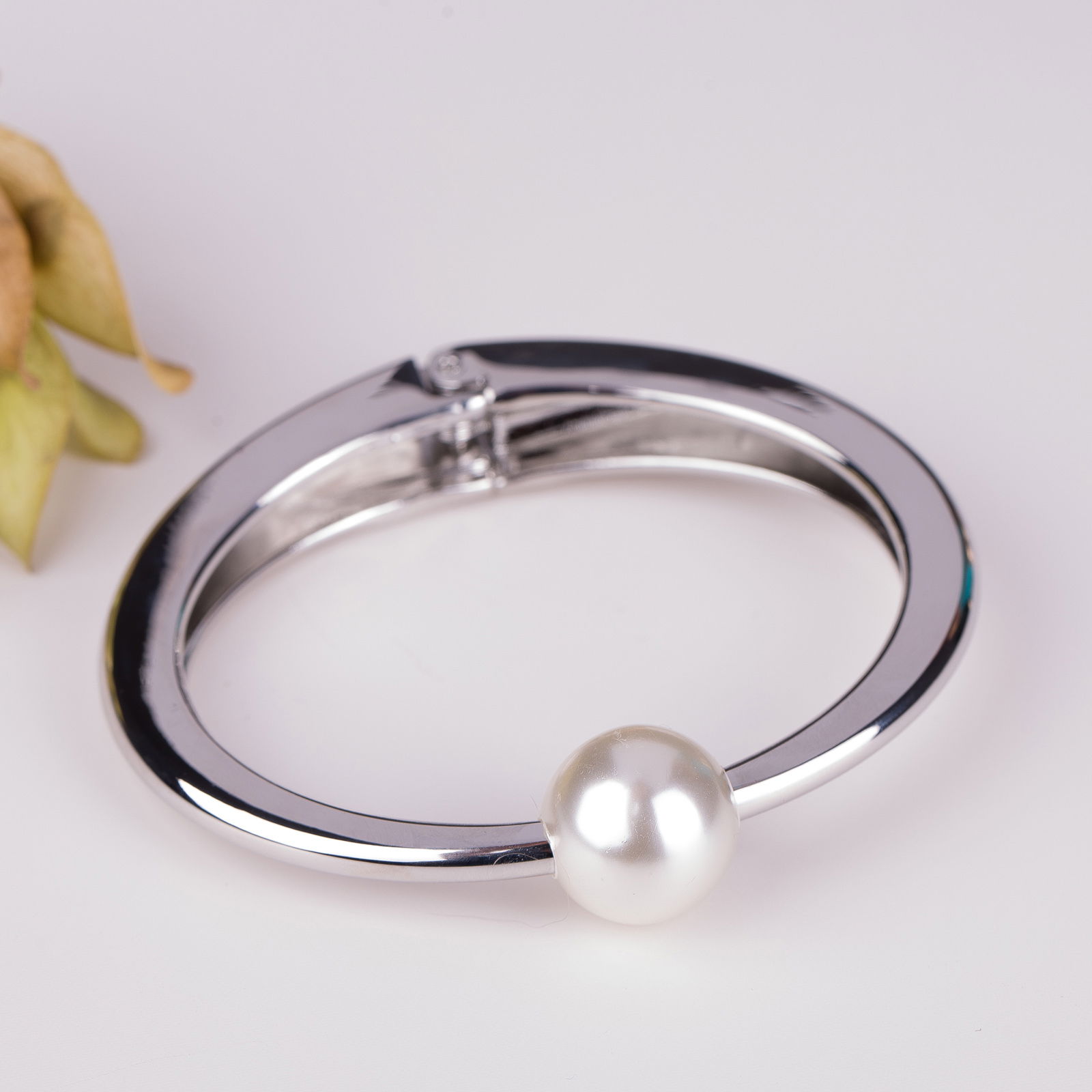 Bratara are o perla sintetica. Se poate largi pentru a fi introdusa pe mana cu ajutorul unui surub cu arc.